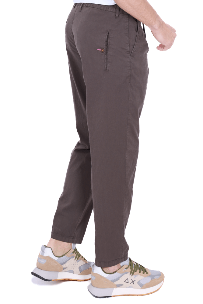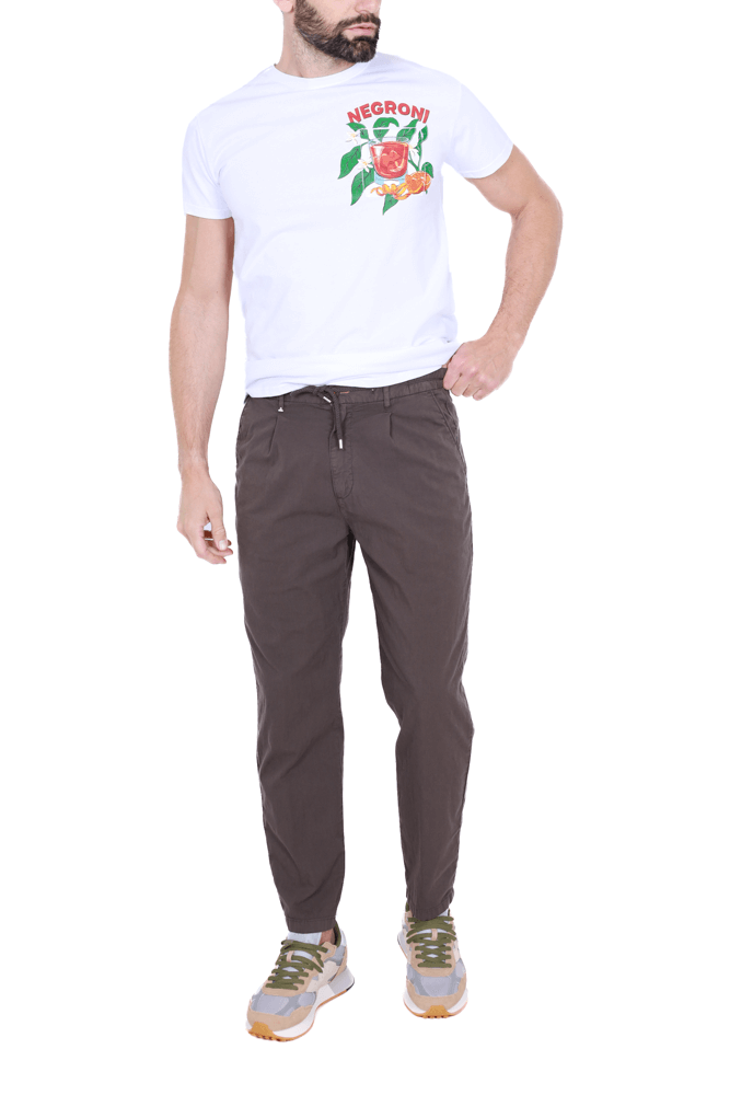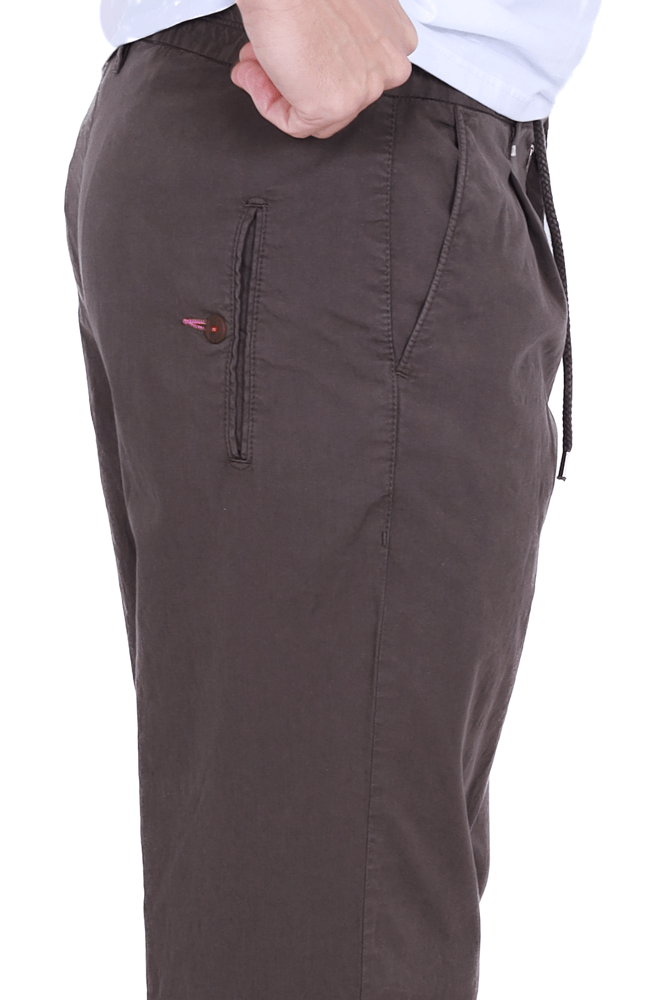 Pantalone misto lino con elastico e laccio marrone