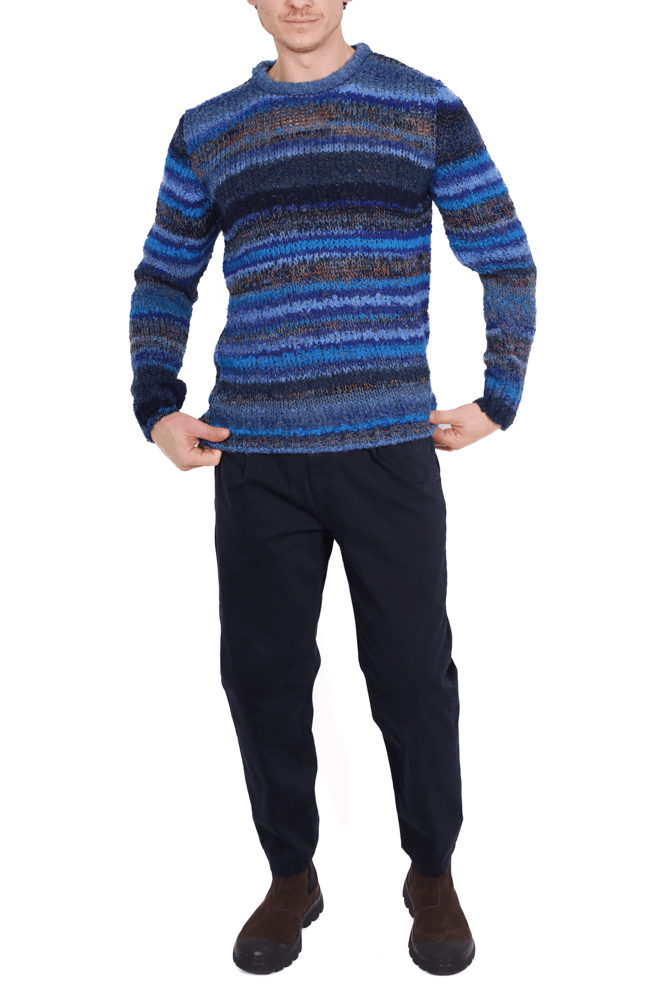 Maglia uomo girocollo a righe blu