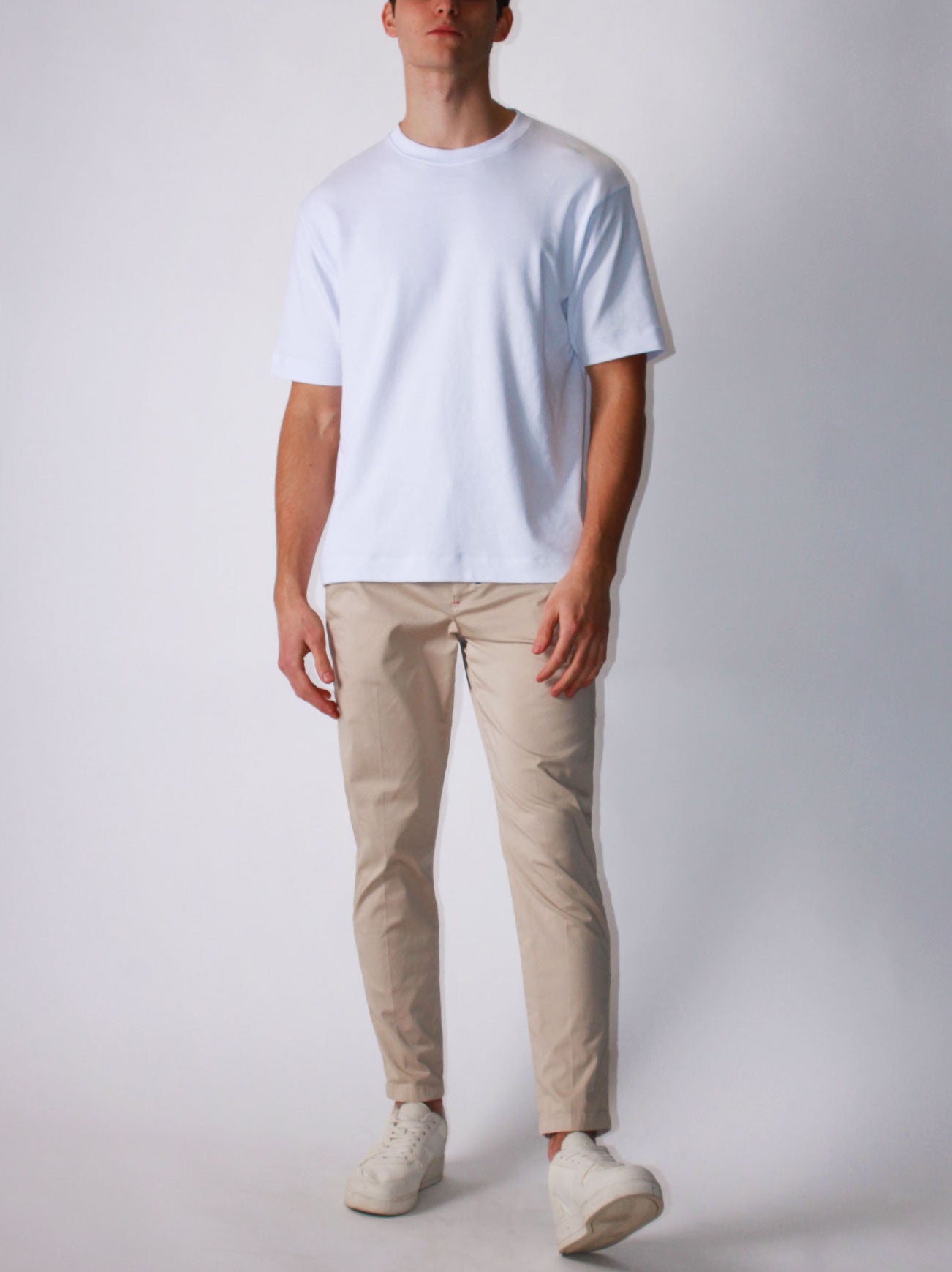 Pantalone chino in rasatello di cotone beige