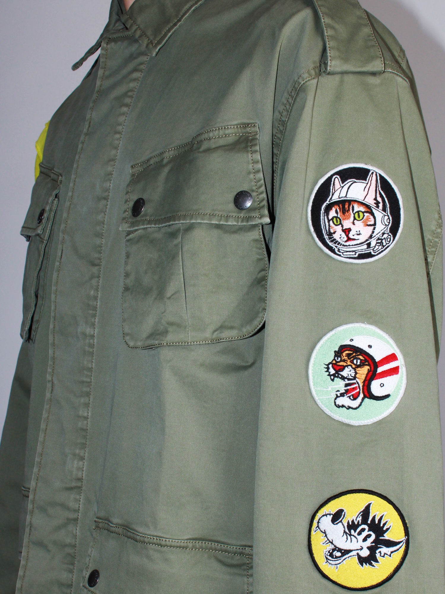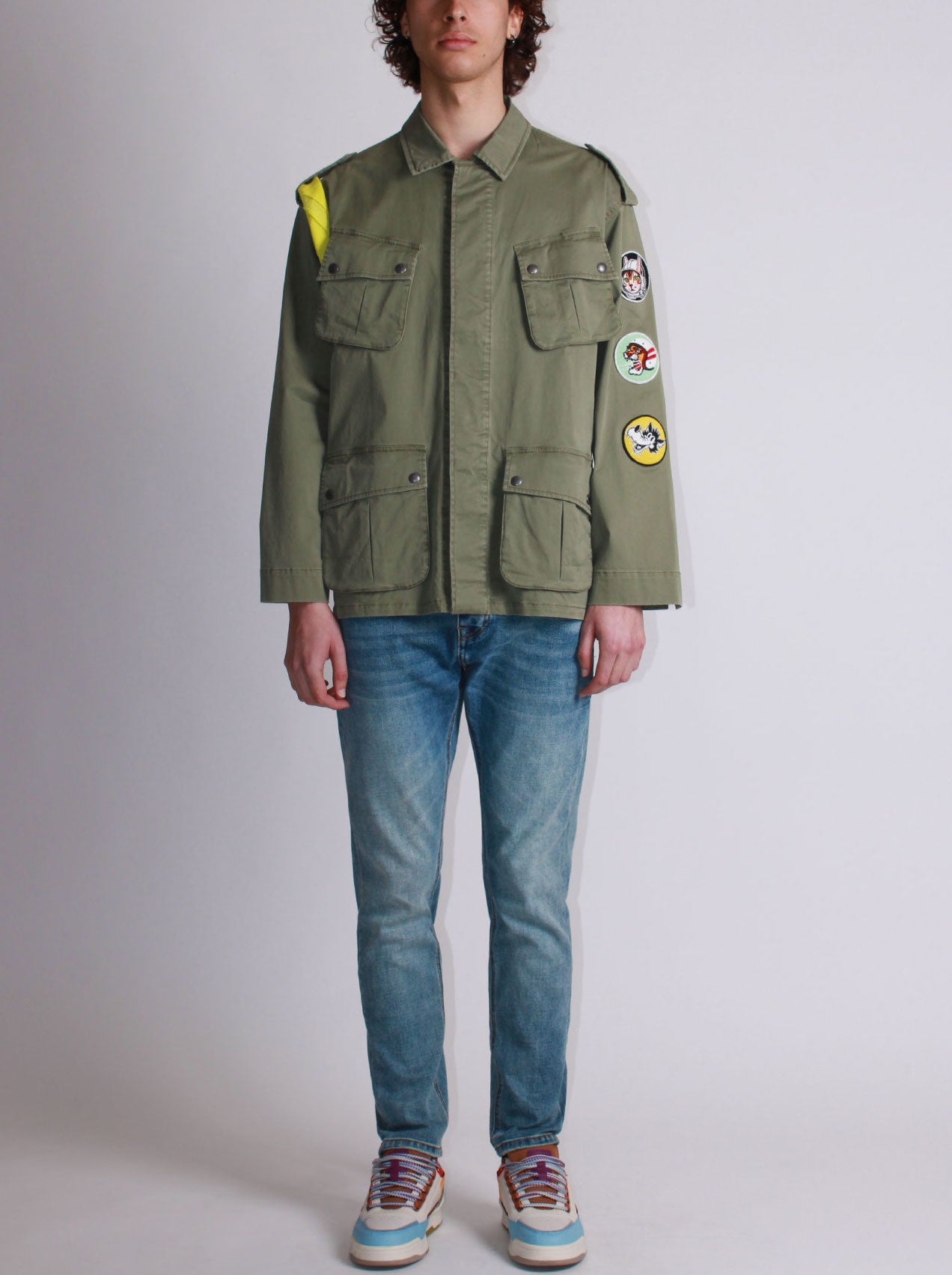 Giacca con tasche e patch in cotone verde
