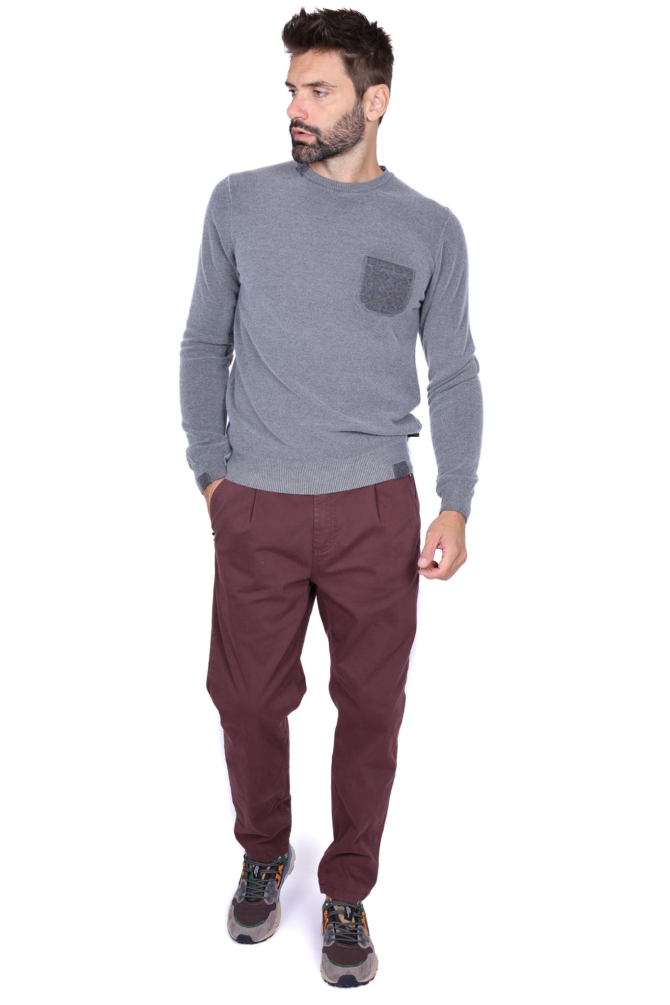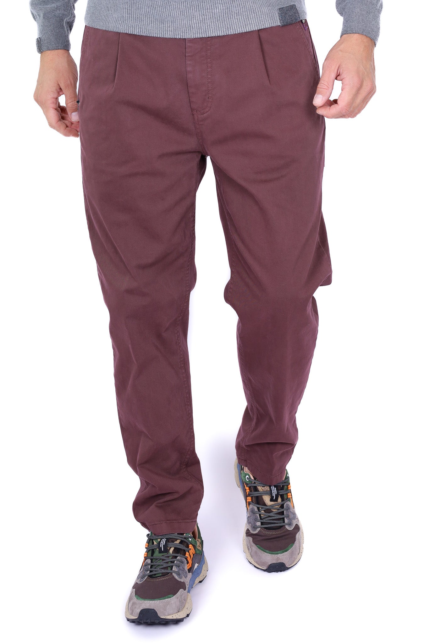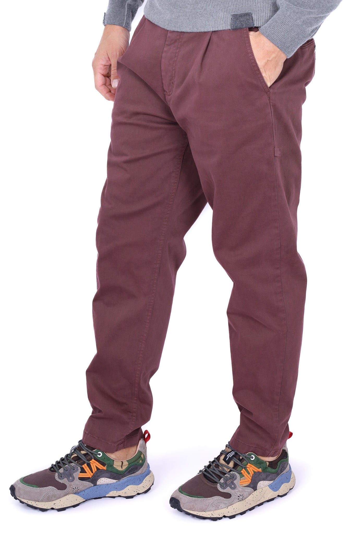 Pantalone uomo chino cotone stretch bordeaux