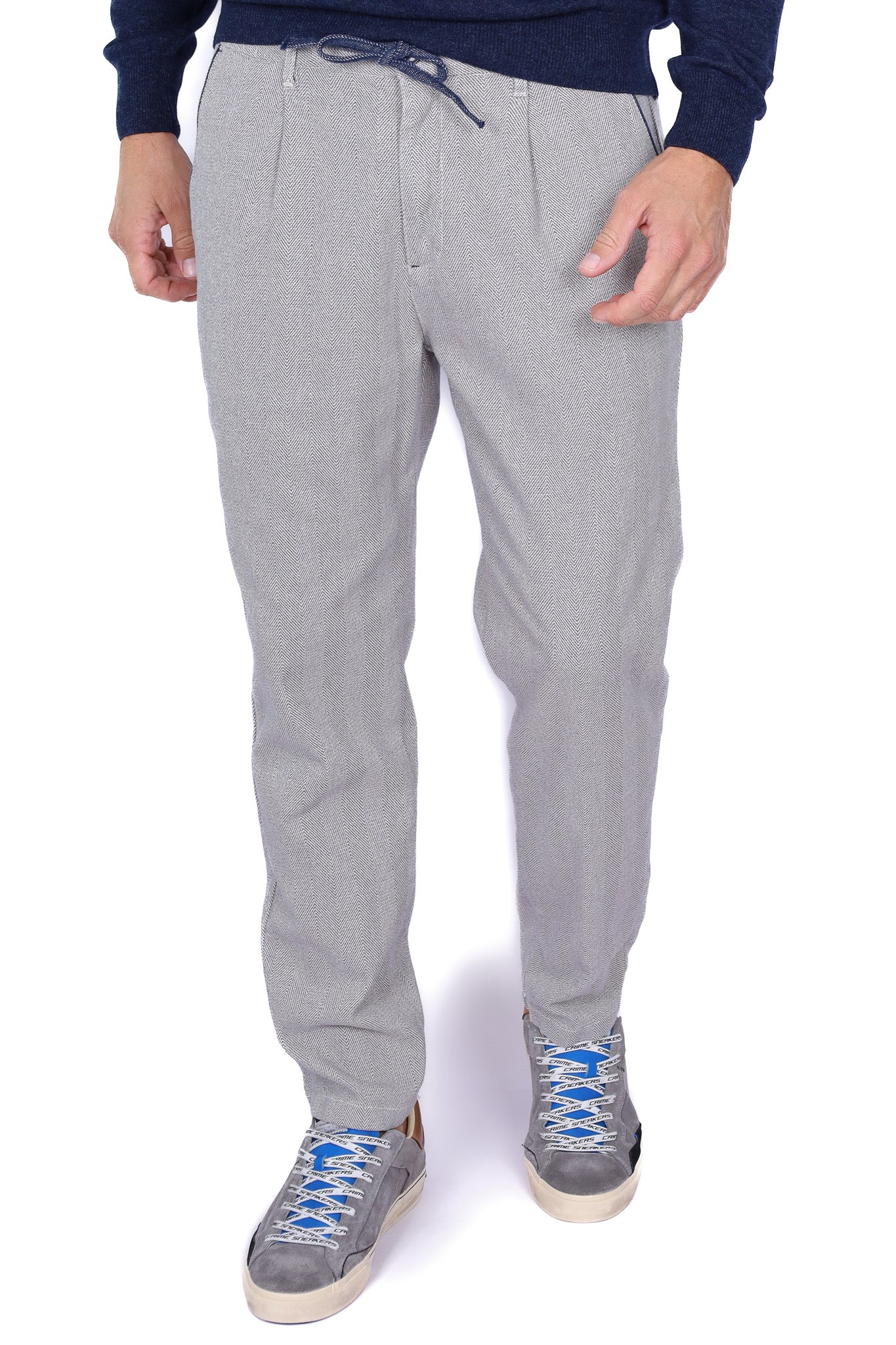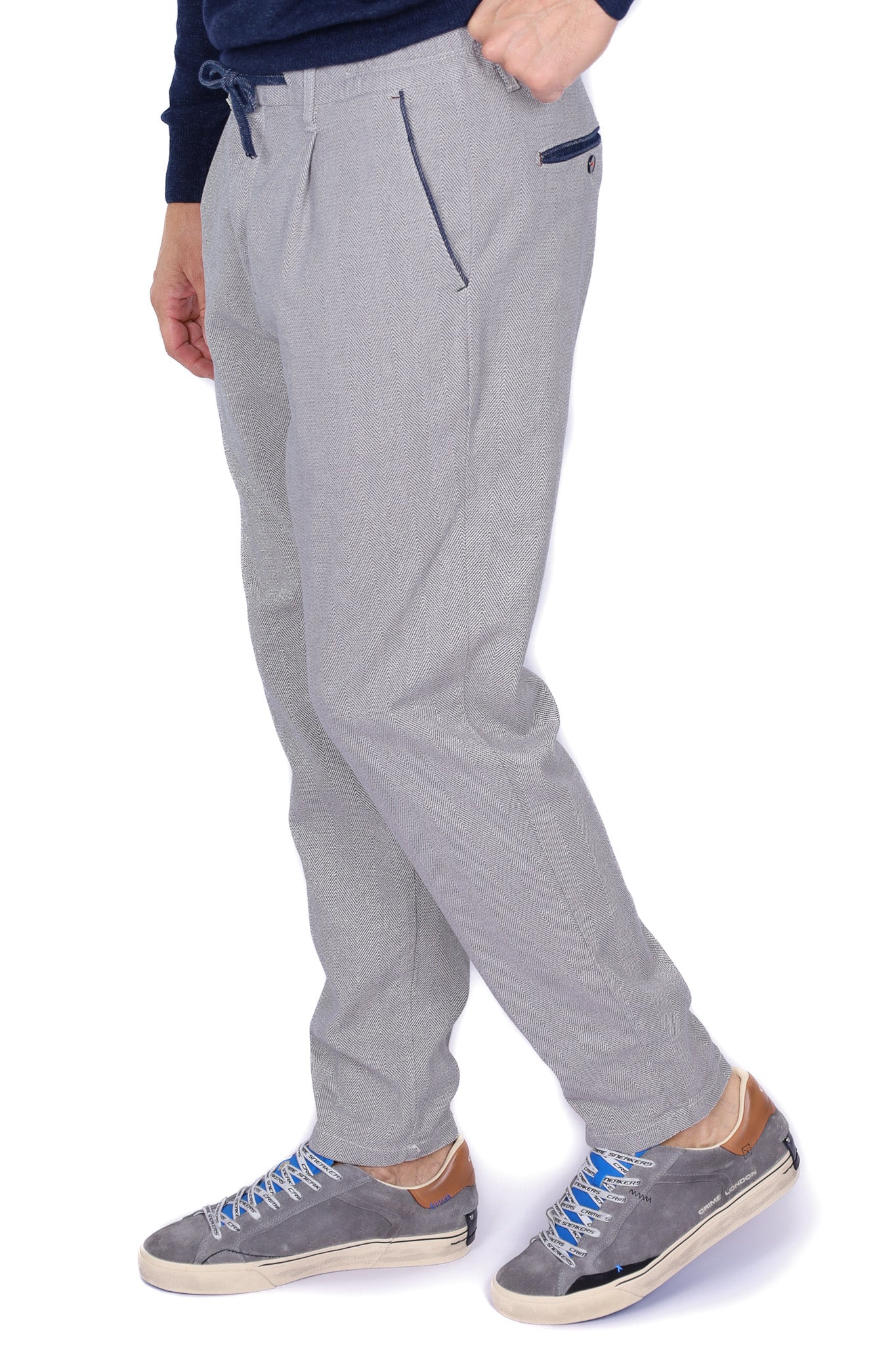Pantalone uomo con pinces in cotone blu