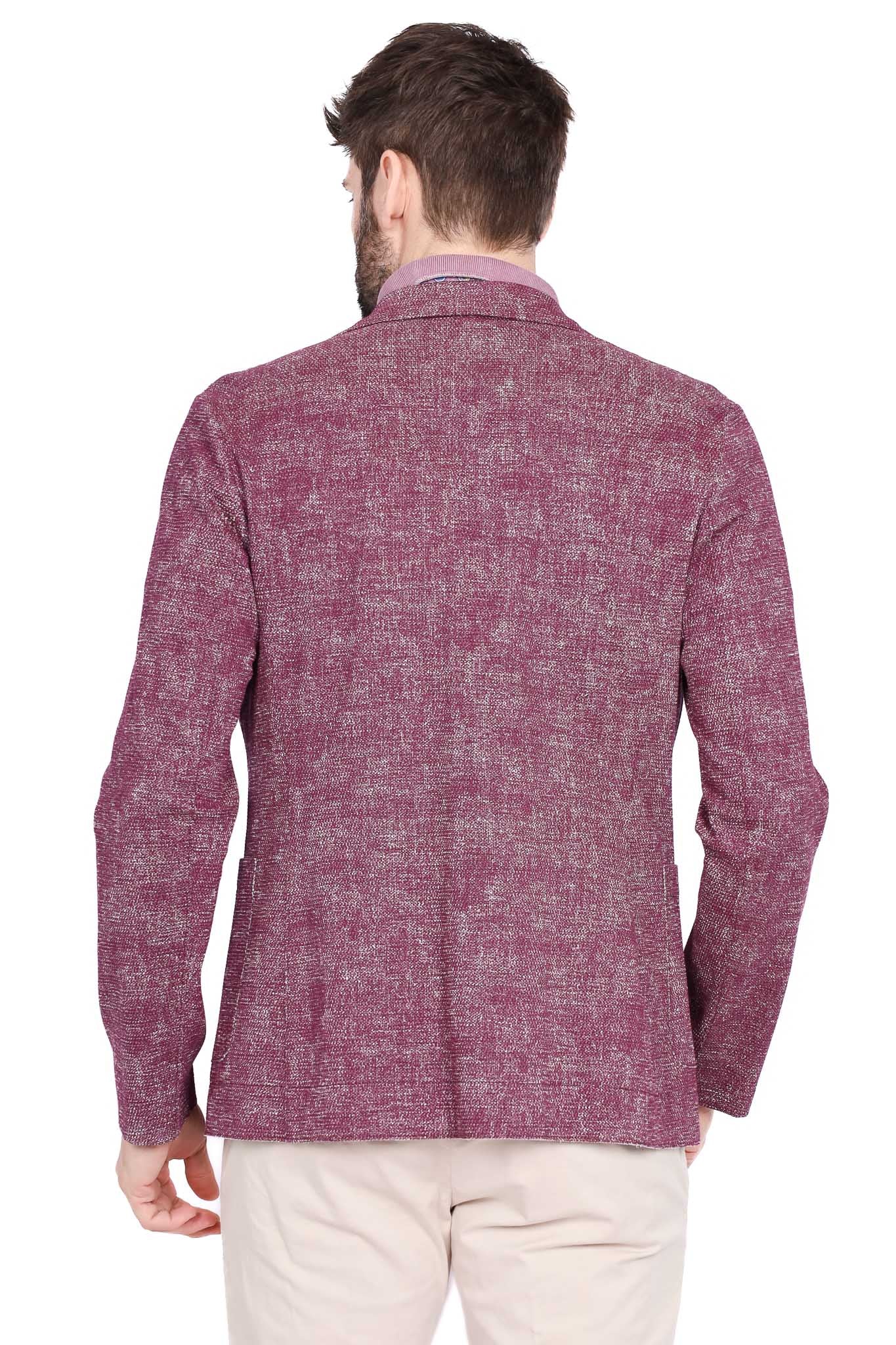 Giacca monopetto in tessuto bordeaux con trama bouclé.