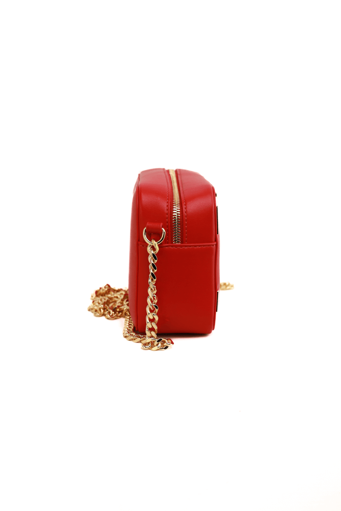 Borsa a tracolla con logo di metallo rosso