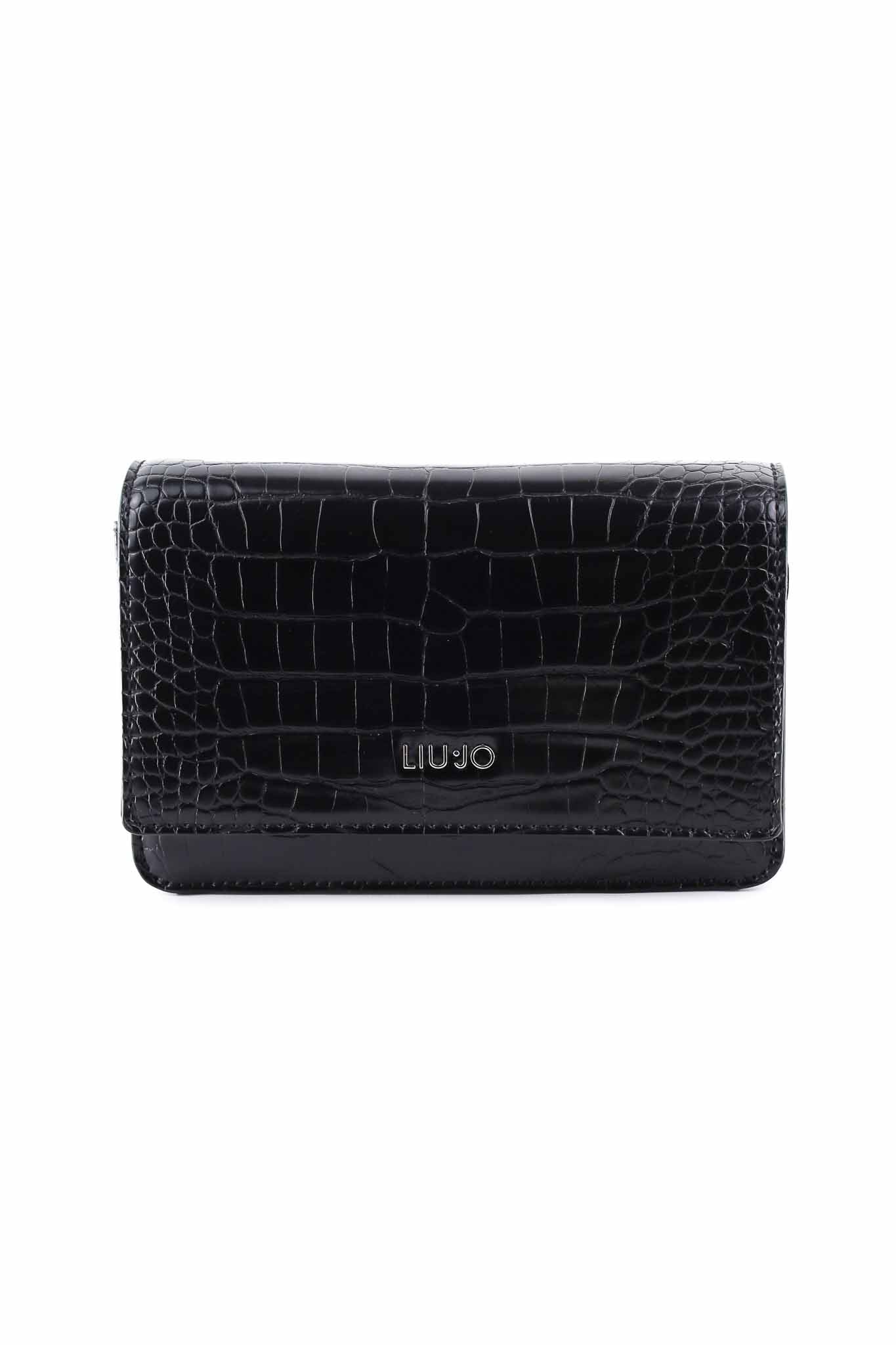 Borsa a tracolla stampa a rilievo con logo nero