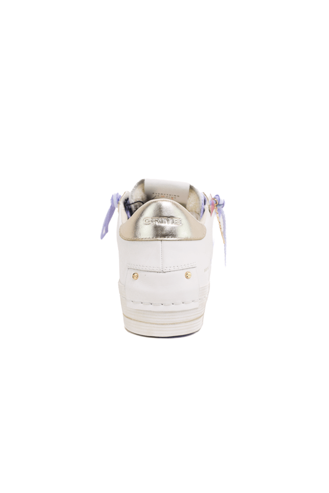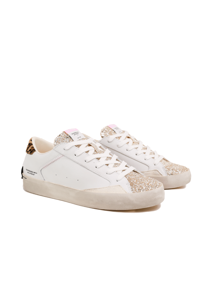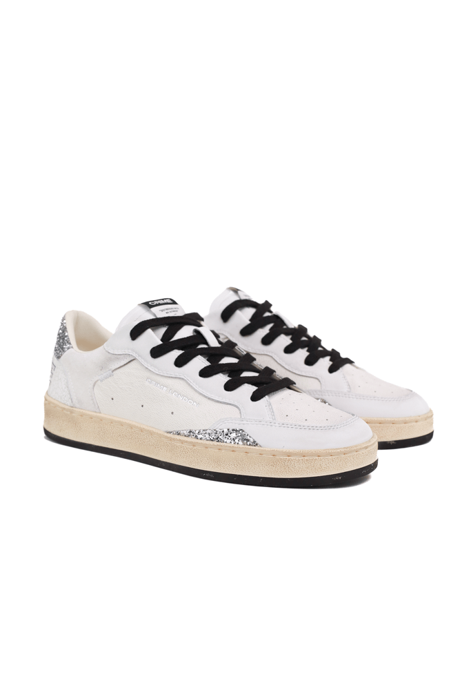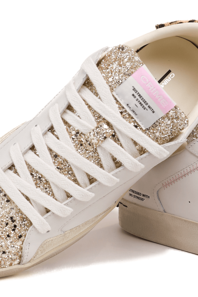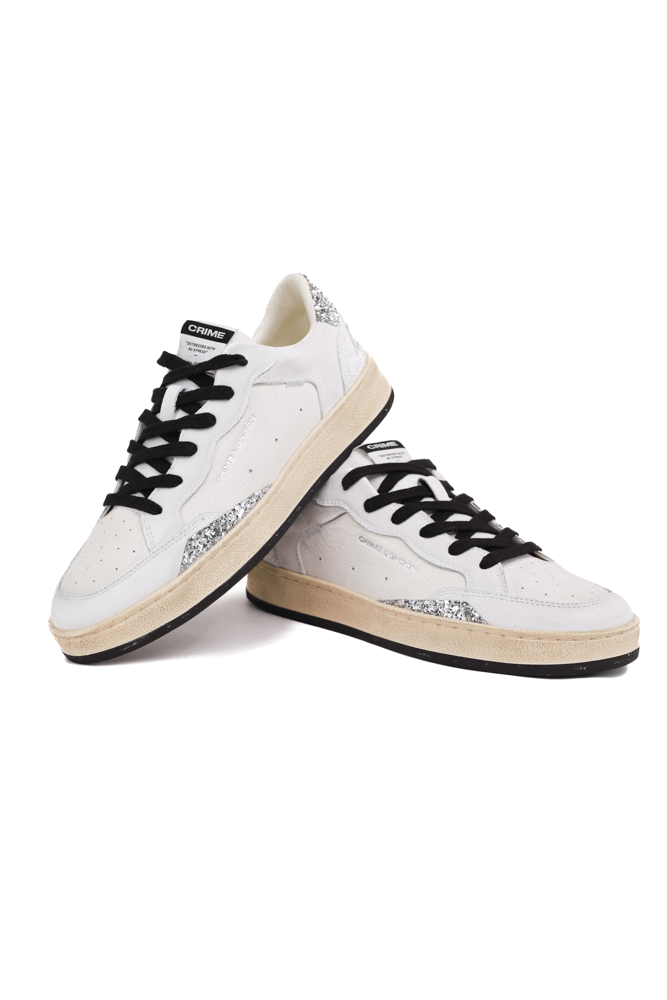 Sneakers donna glitter e tallone crackle' pelle bianco
