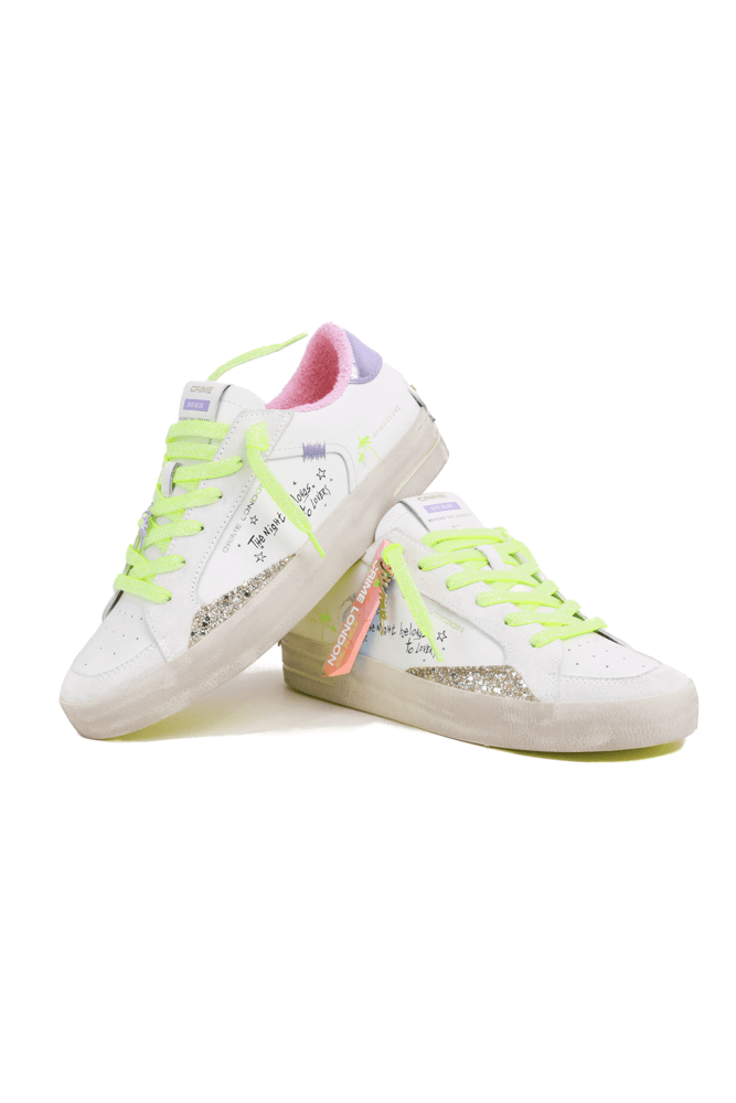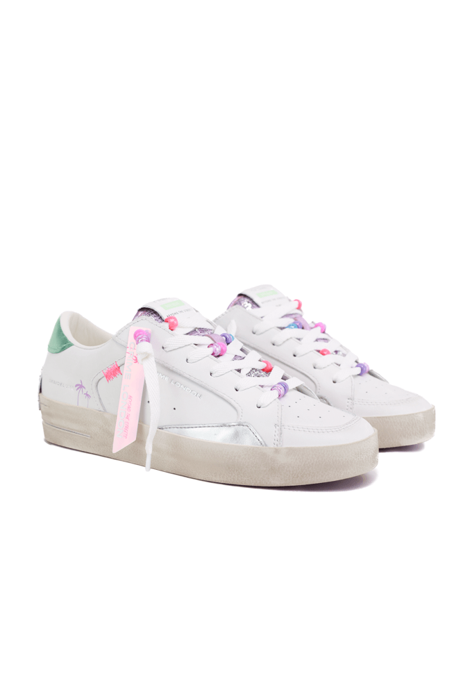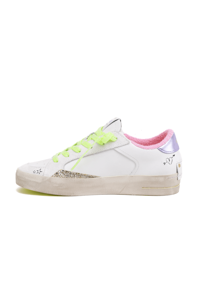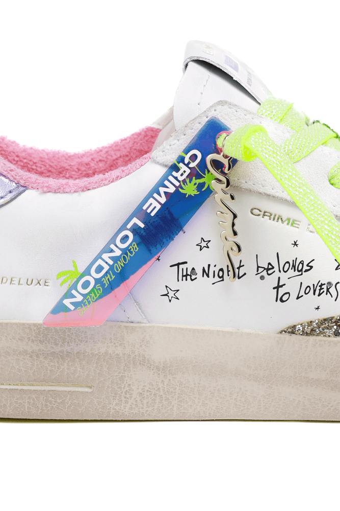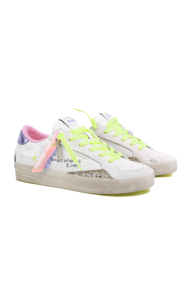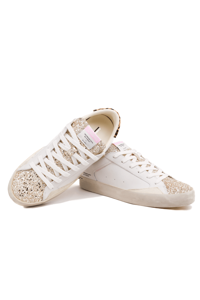 Sneakers donna glitter e tallone crackle' pelle bianco
