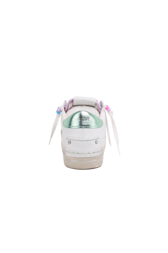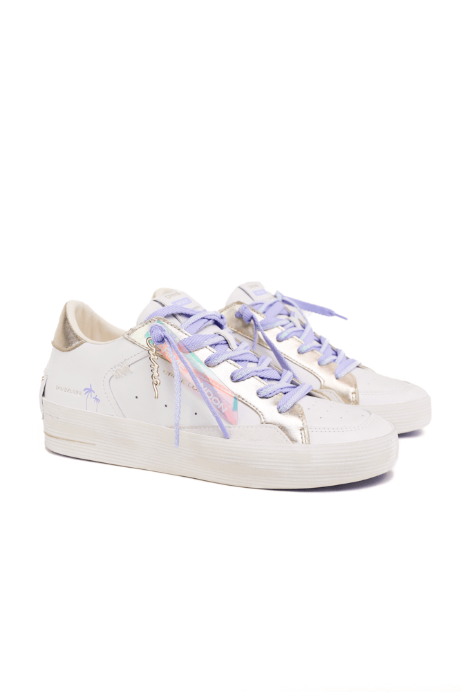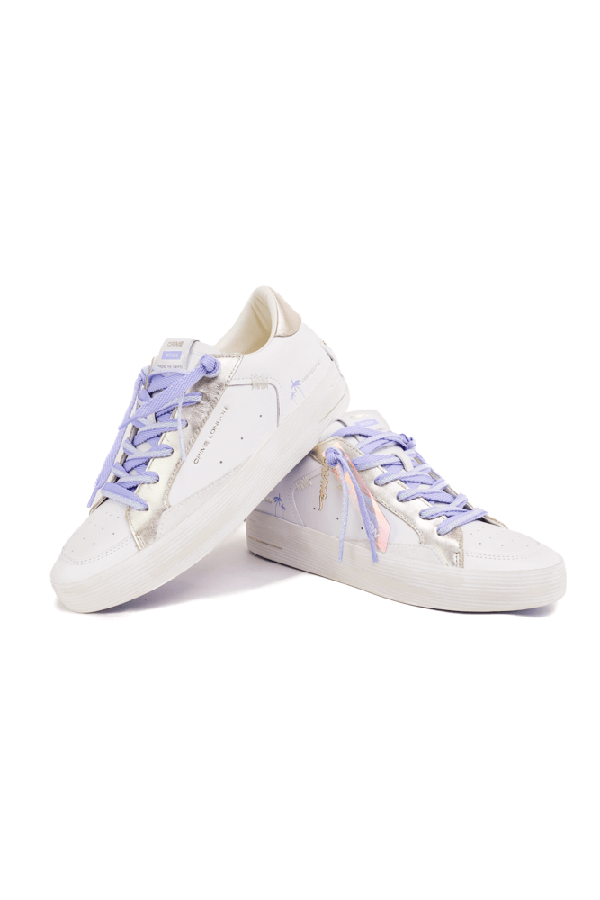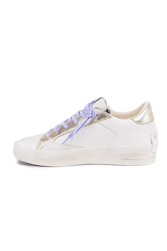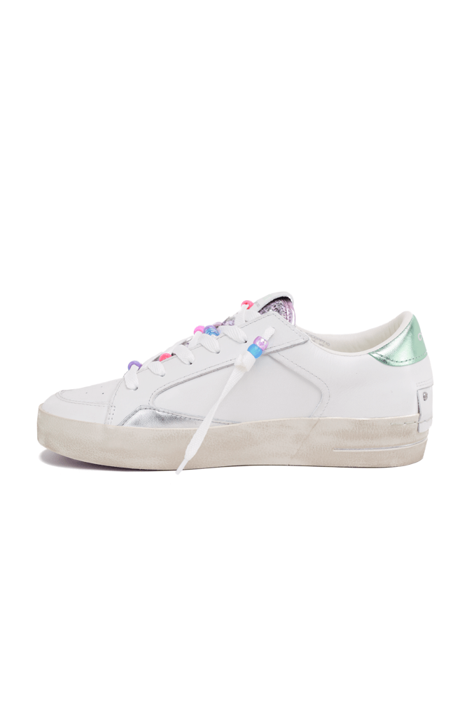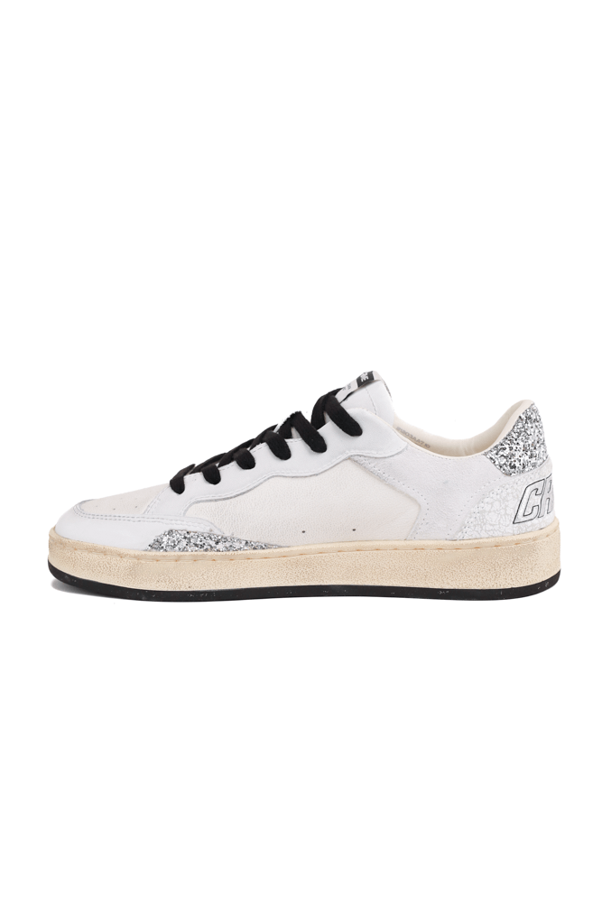 Sneakers donna pelle dettagli laminato e glitter bianco