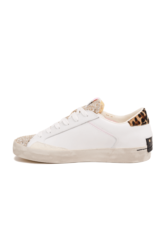 Sneakers donna pelle dettagli animalier e glitter bianco