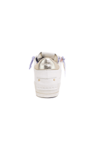 Sneaker in pelle con dettagli in laminato e doppi lacci colorati