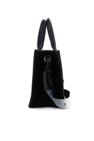 Borsa shopper logata in tessuto e pelle nero