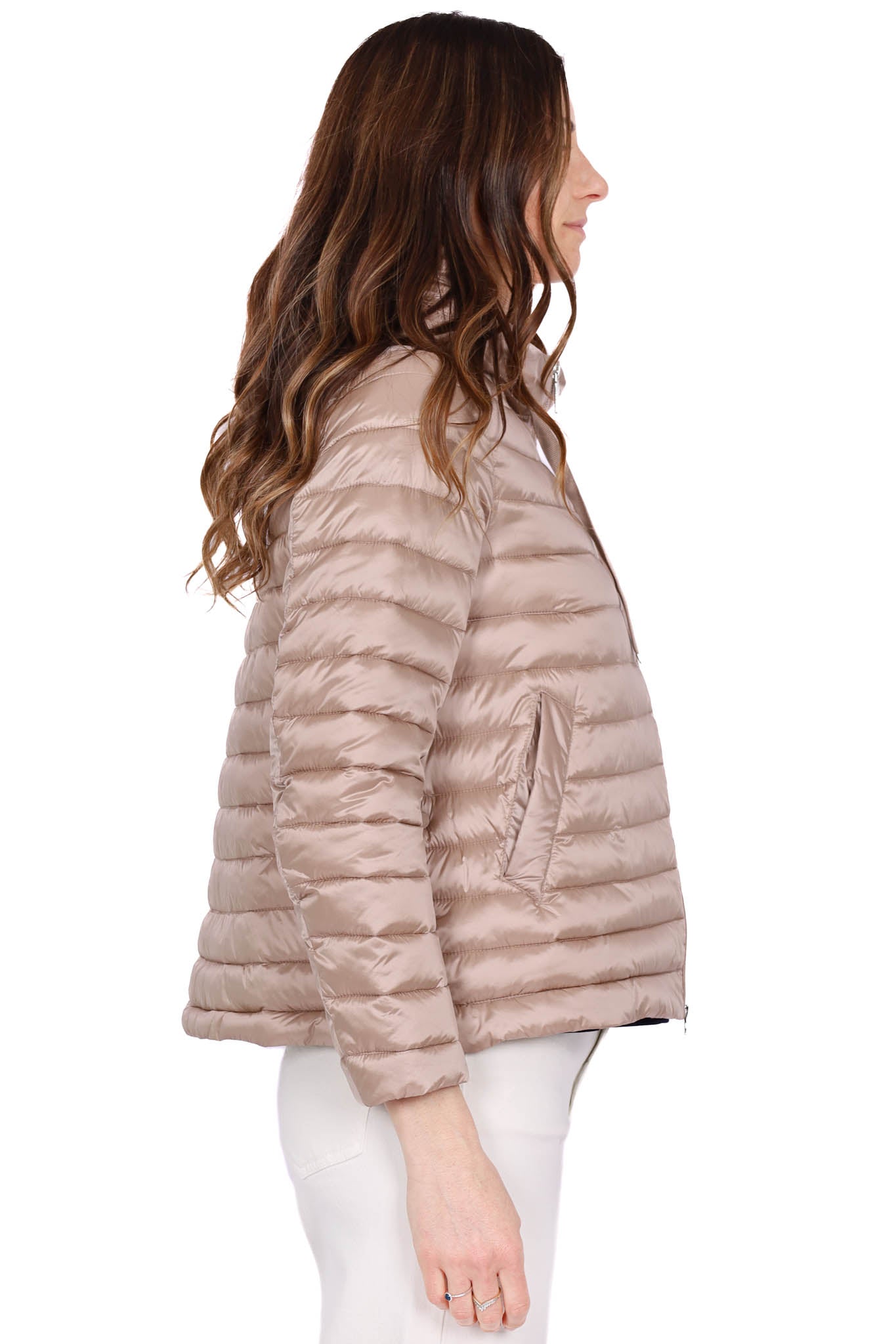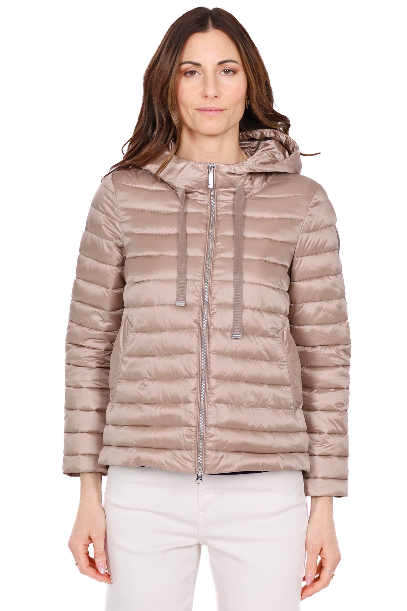 Piumino leggero con cappuccio tortora