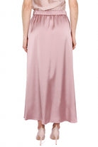 Elegante gonna lunga rosa cipria dalla linea fluida e femminile. Il fiocco laterale in vita aggiunge un dettaglio raffinato, mentre il tessuto leggero dona movimento e comfort. Perfetta per look eleganti o occasioni speciali.