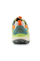 Sneakers low-cut con tomaia in suede e tessuto tecnico fantasia, caratterizzate da inserti rosa, verde lime, azzurro e dettagli arancioni fluo. La suola chunky dentellata assicura grip e comfort, perfetta per look sporty-casual dal carattere deciso.