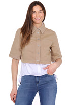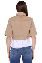 Giacca cropped in cotone e lyocell beige