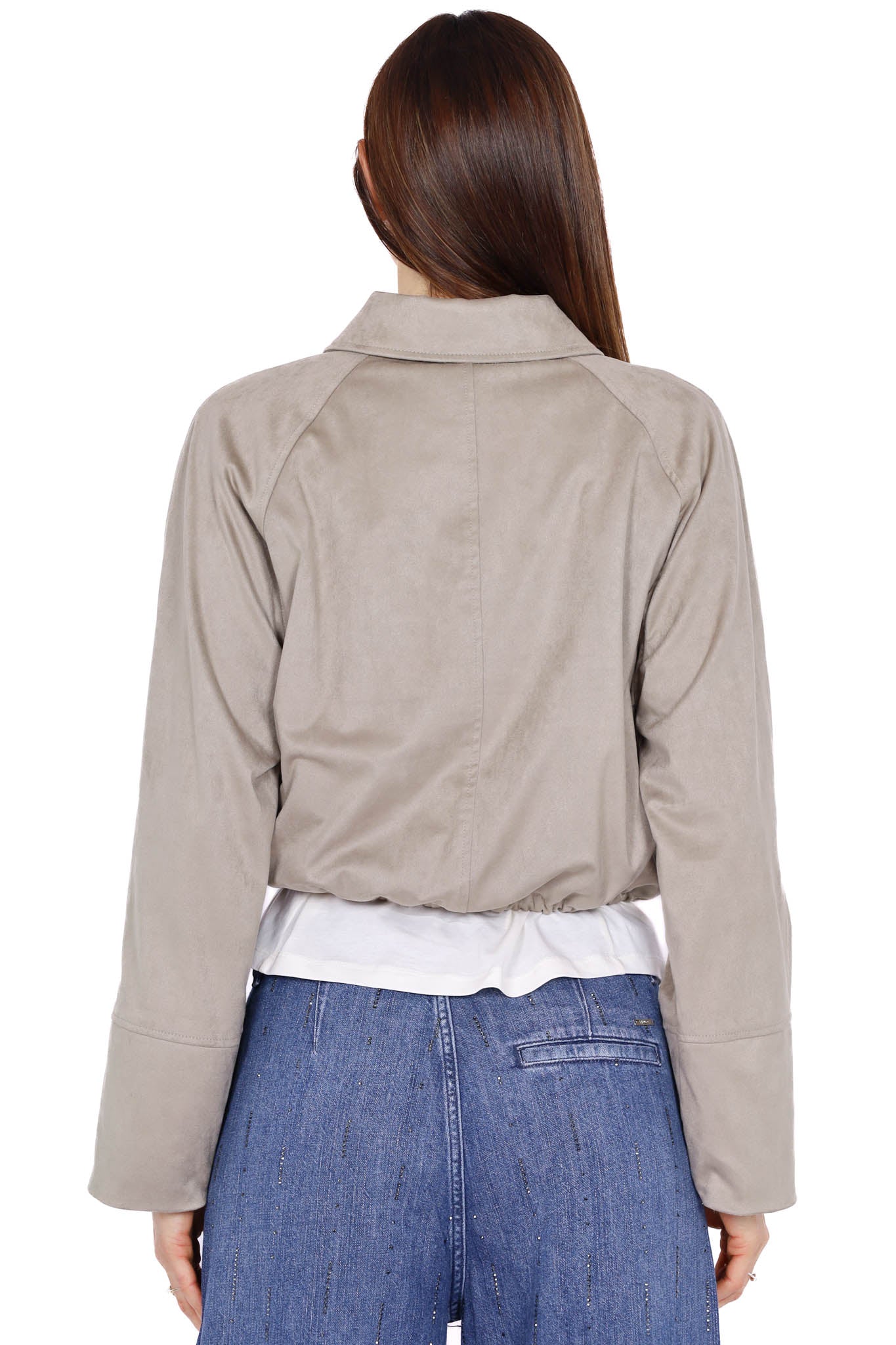 Giacca cropped effetto suede con coulisse color pietra