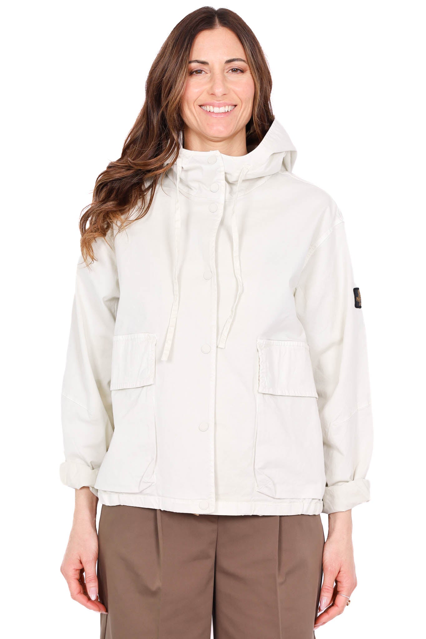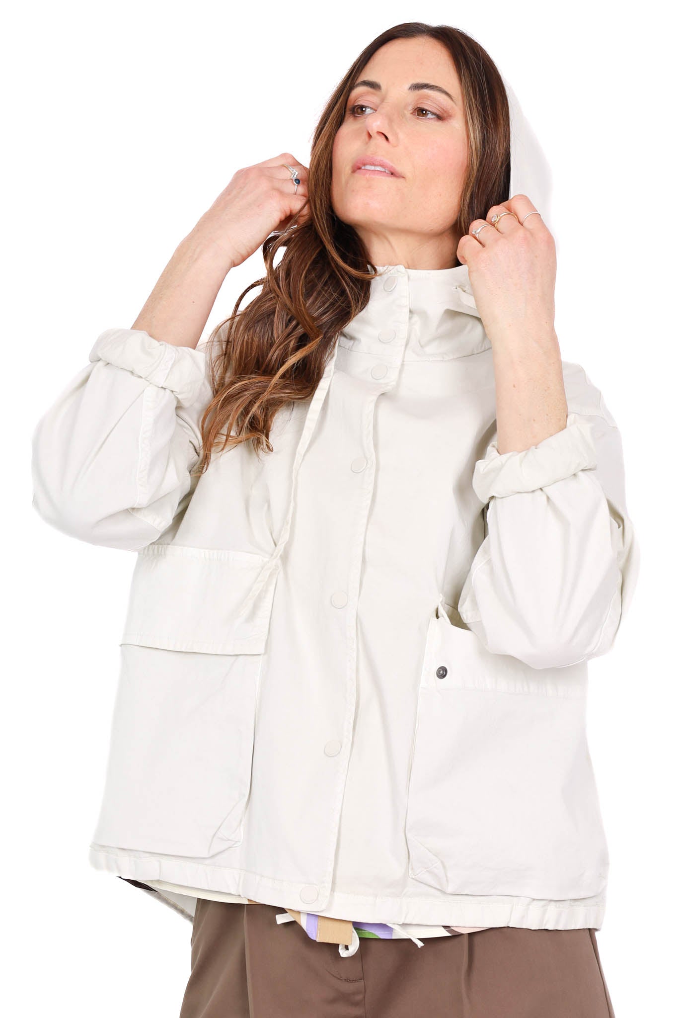 Giacca dal design essenziale con cappuccio regolabile, chiusura frontale e tasche applicate. Il taglio morbido garantisce comfort e praticità quotidiana.
