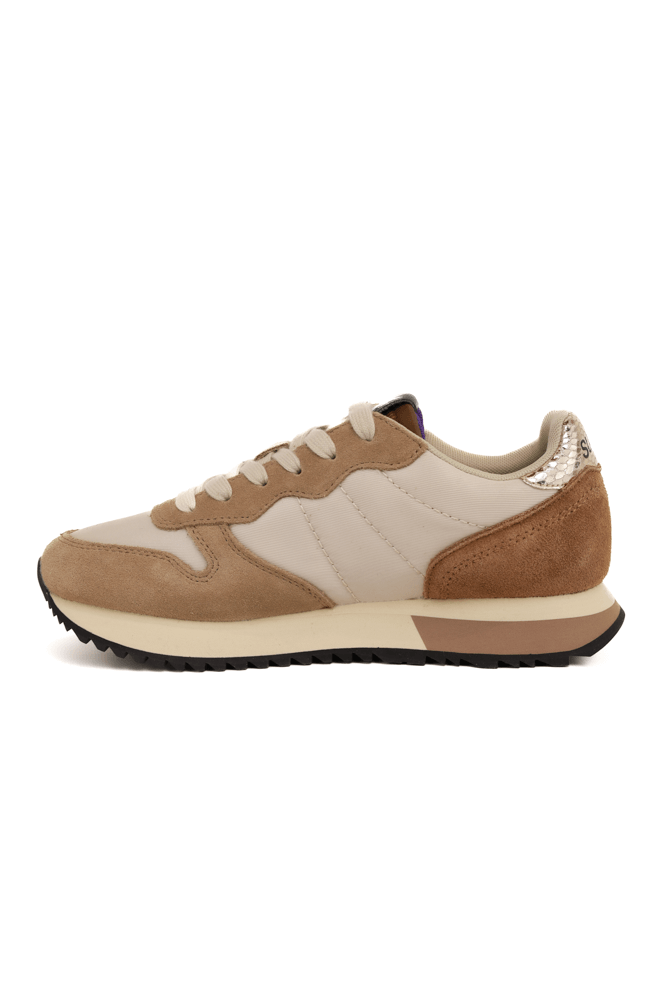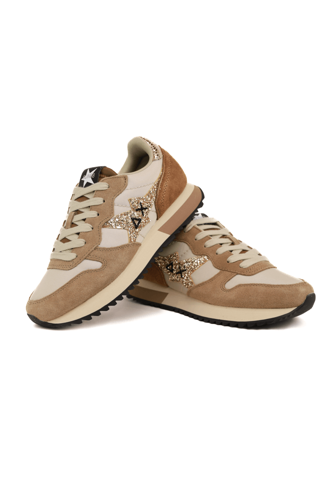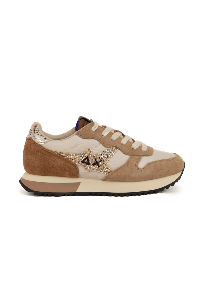 Sneaker stile running comode e di tendenza in pelle scamosciata e tessuto di nylon con glitter
