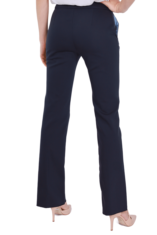 Pantalone dritto leggermente flare con tasche america in tessuto tecnico stretch
