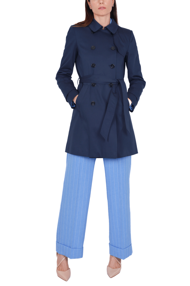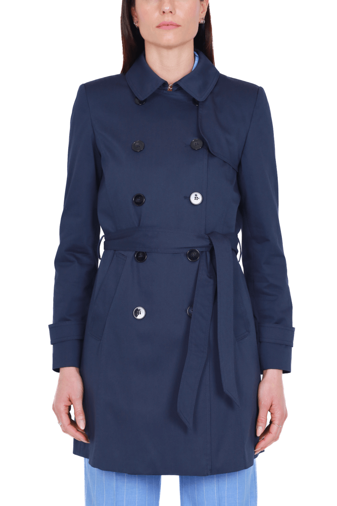 Trench donna primaverile doppiopetto in tessuto di cotone stretch idrorepellente