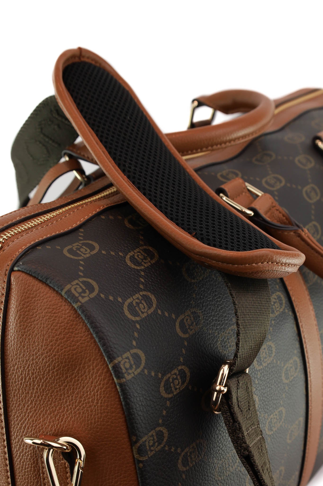 Borsa da viaggio Liu Jo in tessuto stampato con monogram all‑over nei toni del marrone, rifinita da profili e manici in similpelle. La tracolla logata regolabile e l’ampio interno con chiusura a zip la rendono pratica per weekend fuori porta o come elegante bagaglio a mano.