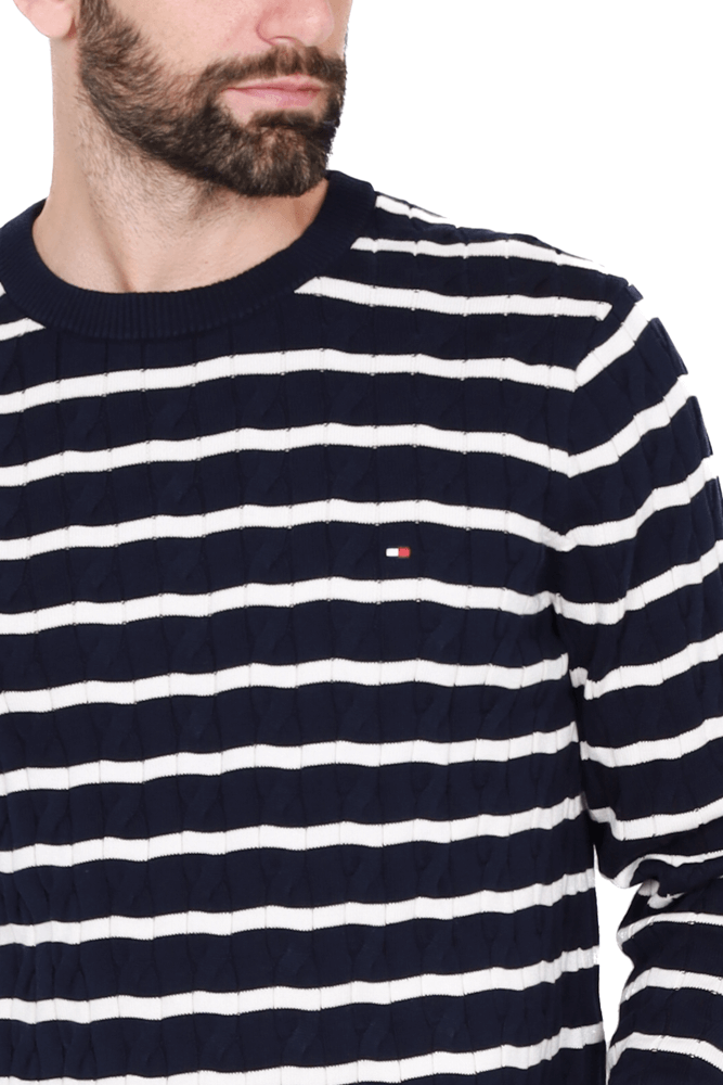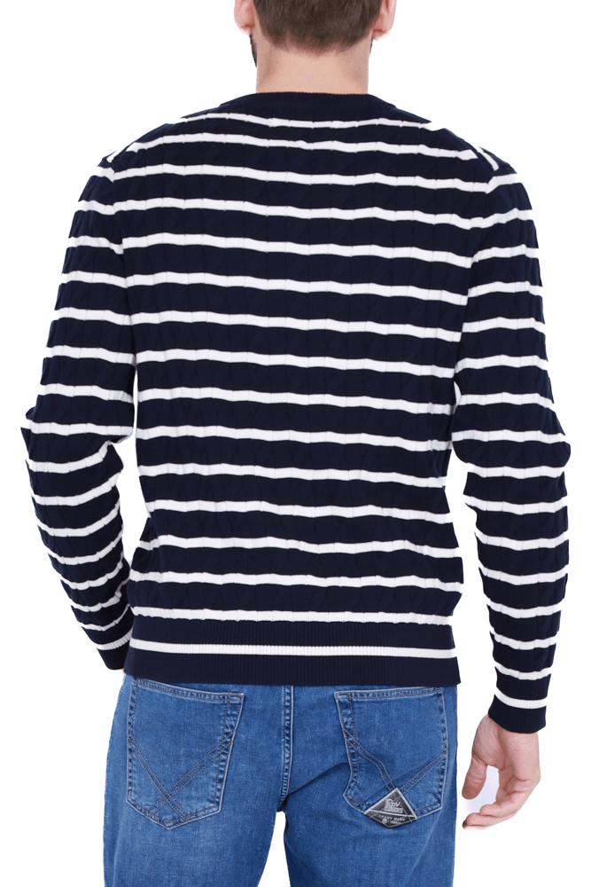 Maglia girocollo in cotone a righe blu