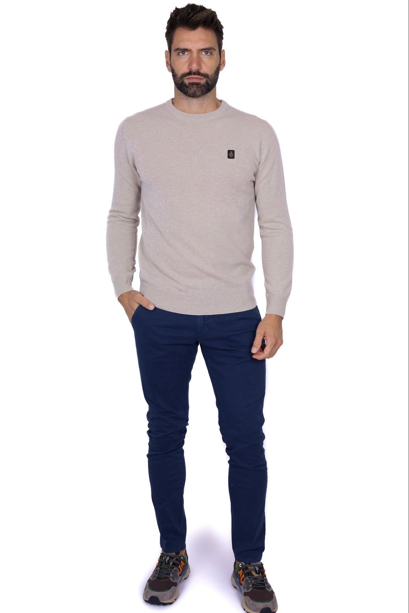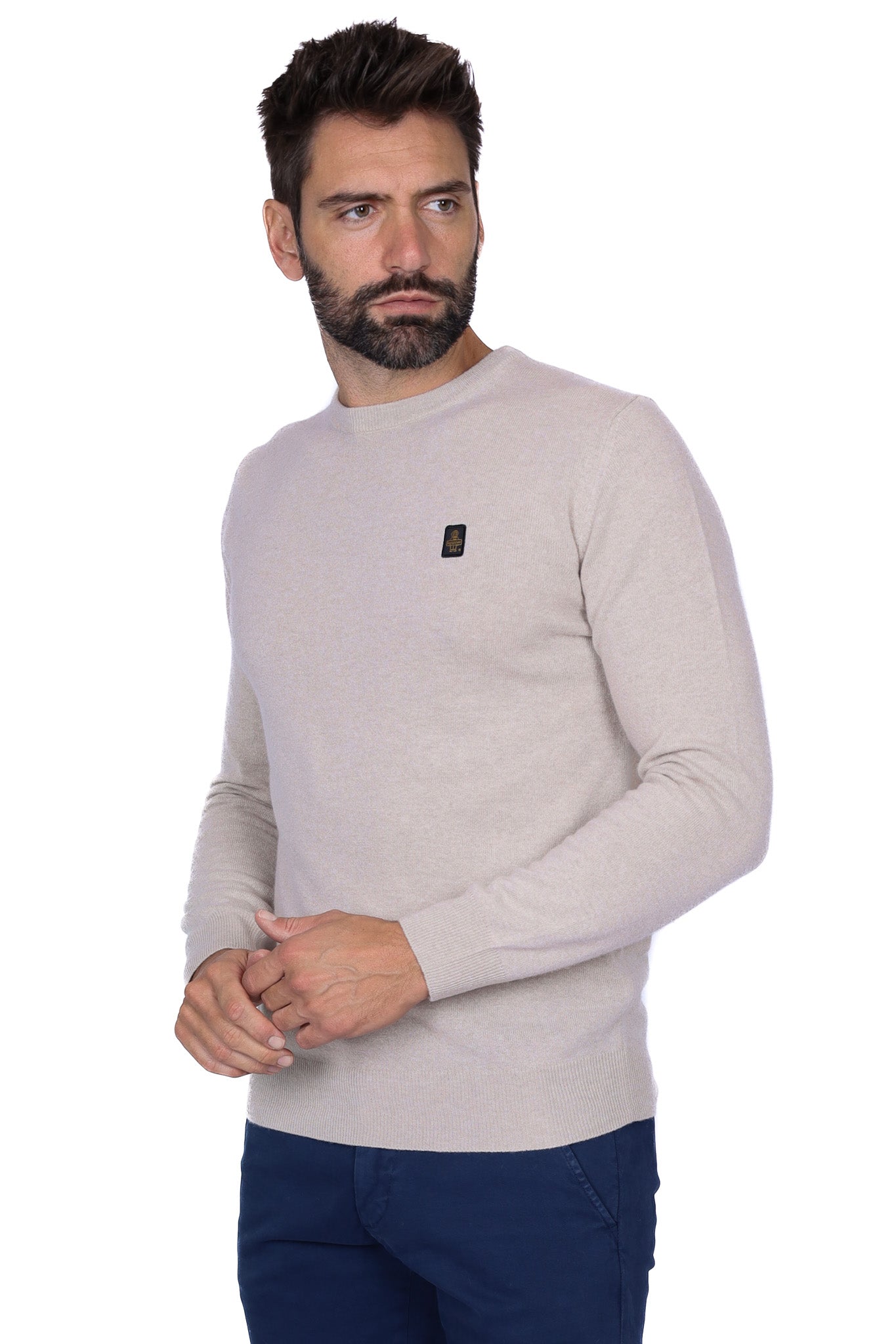 Maglia uomo girocollo in lana extrafine con patch beige