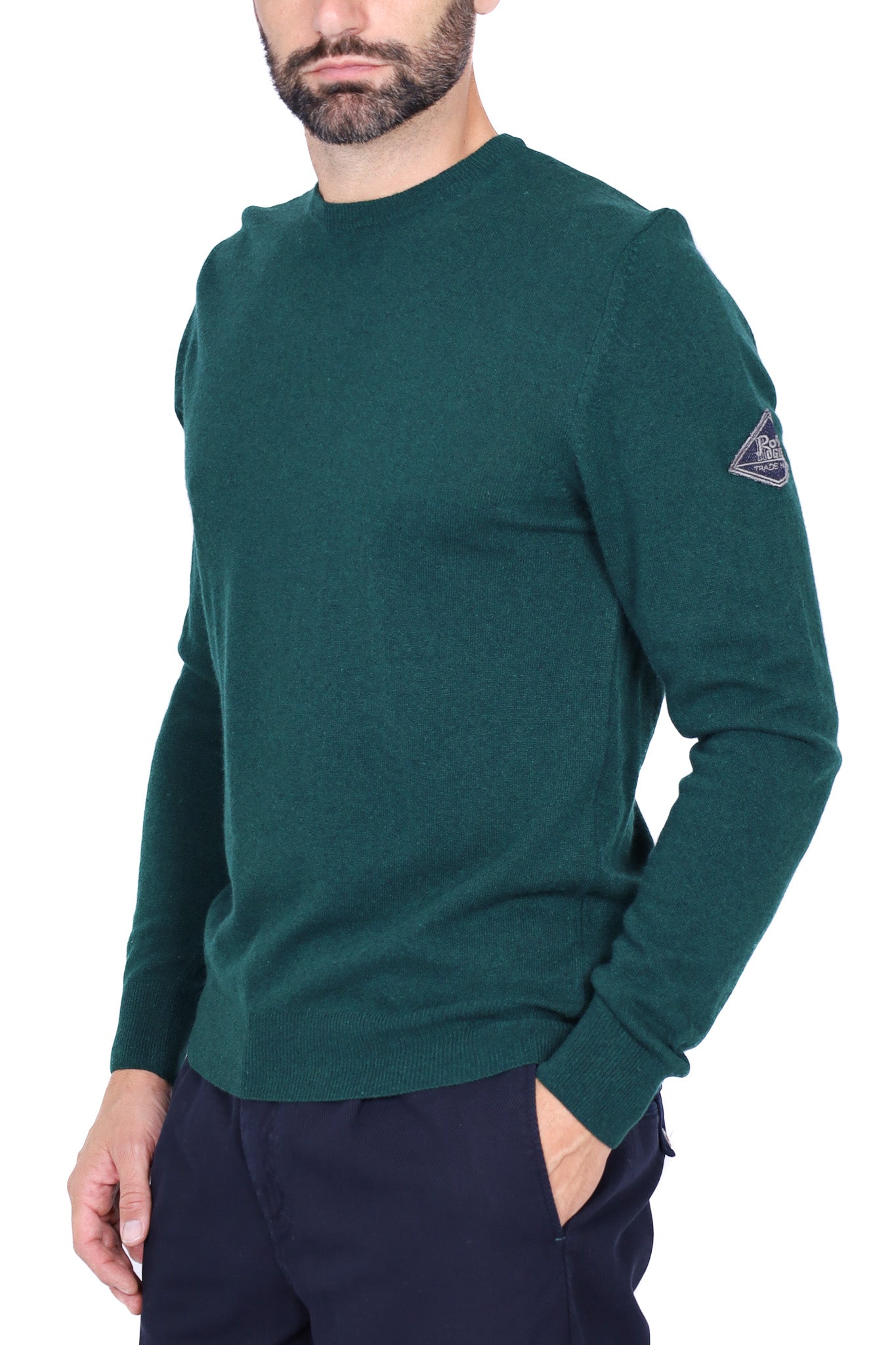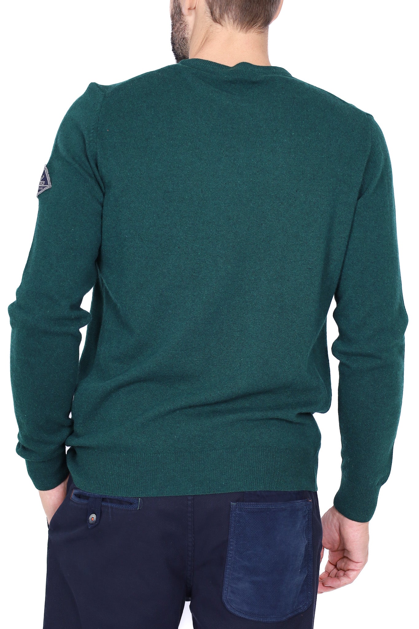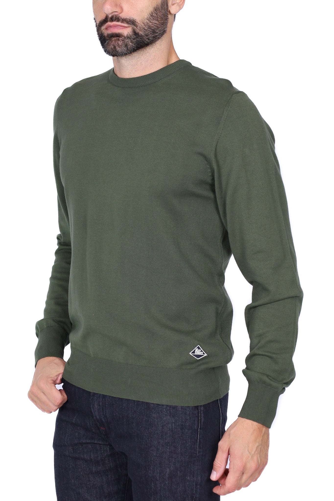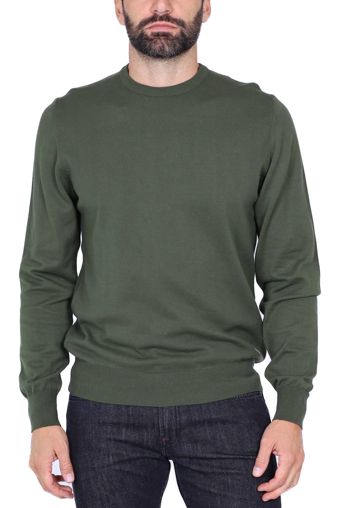 Maglia uomo girocollo in lana merino con taschino verde militare