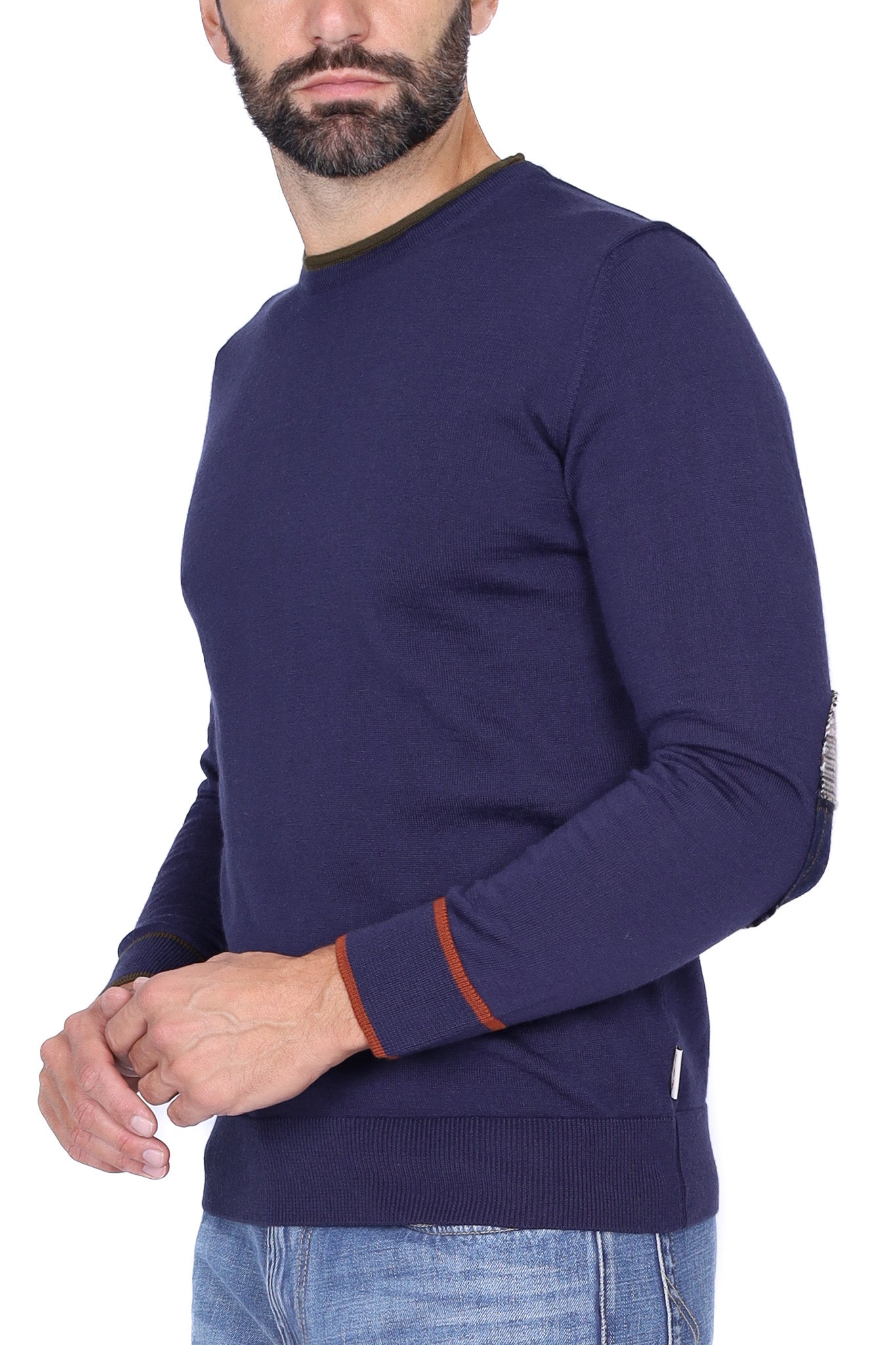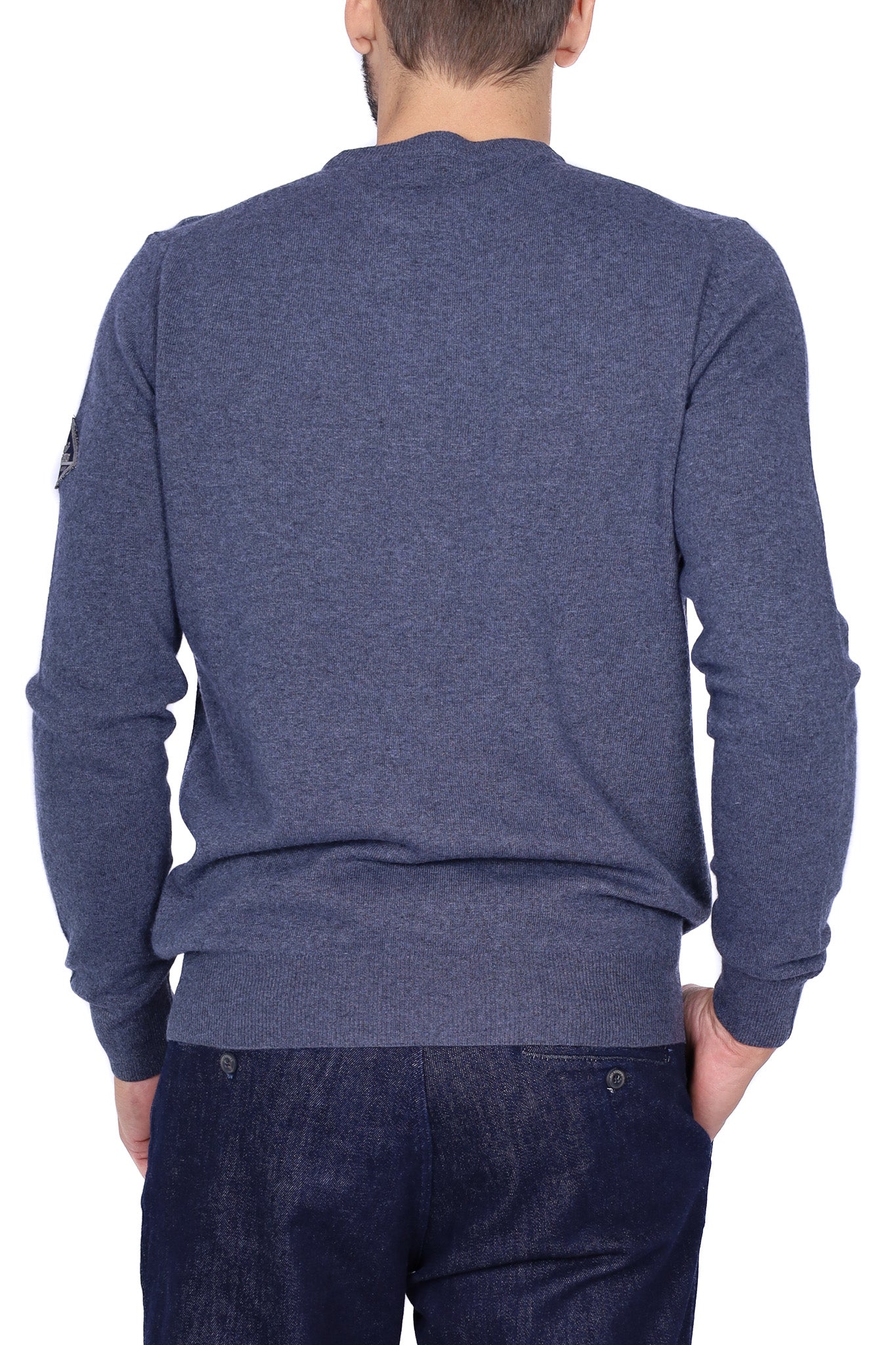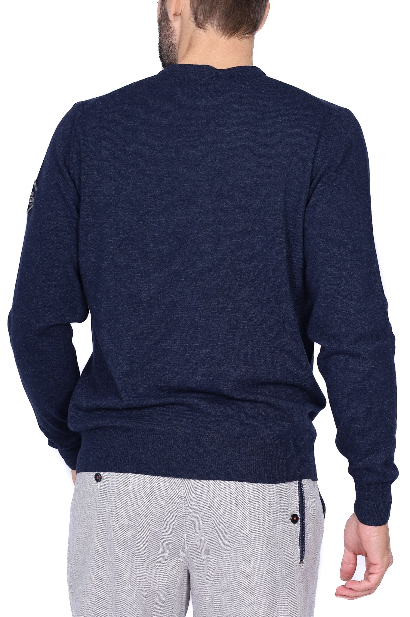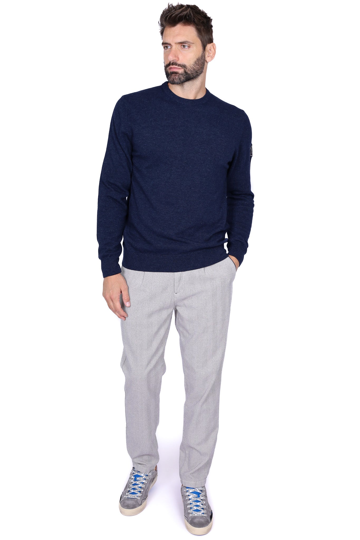 Maglia uomo girocollo in lana merino con patch blu