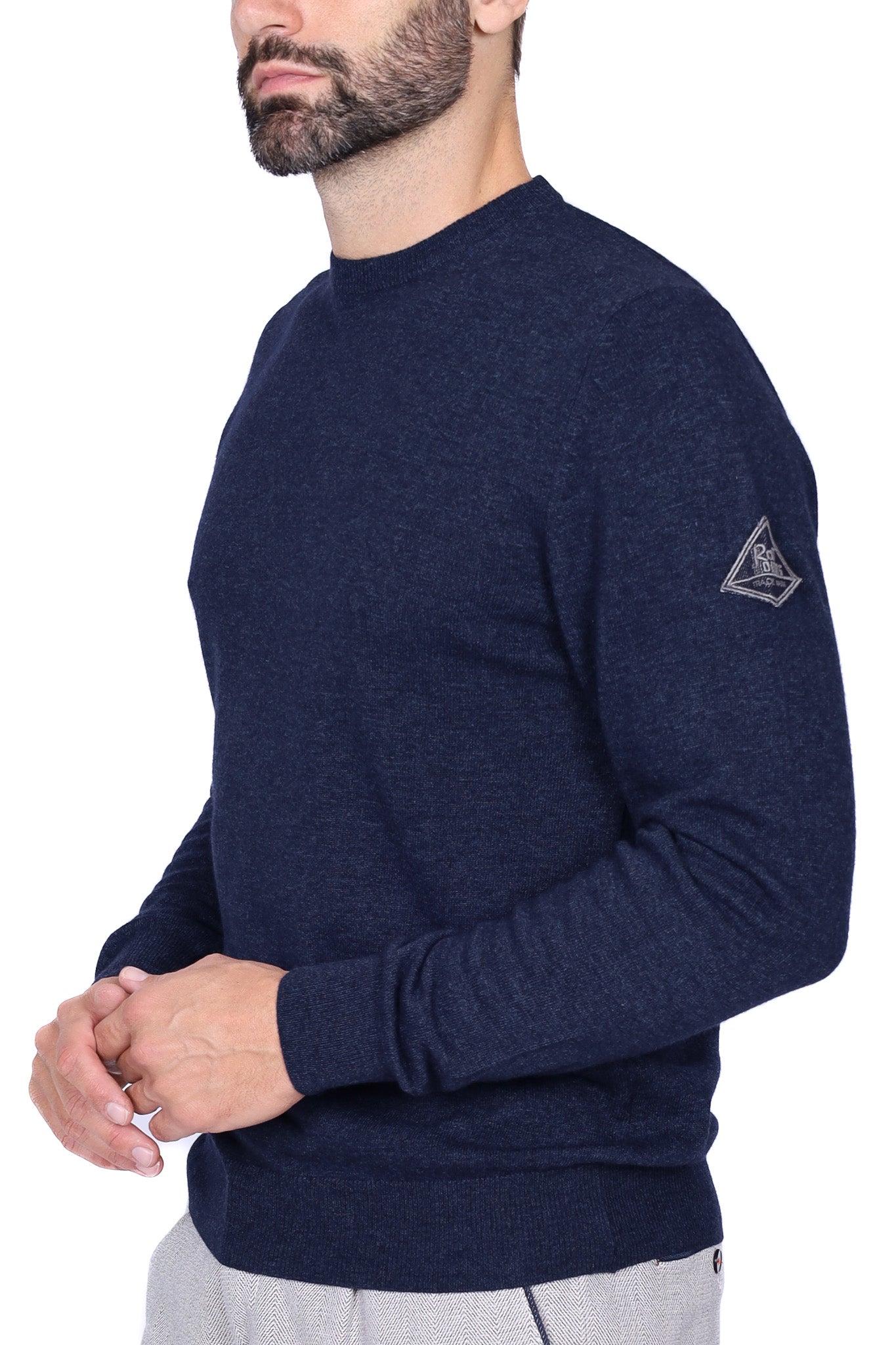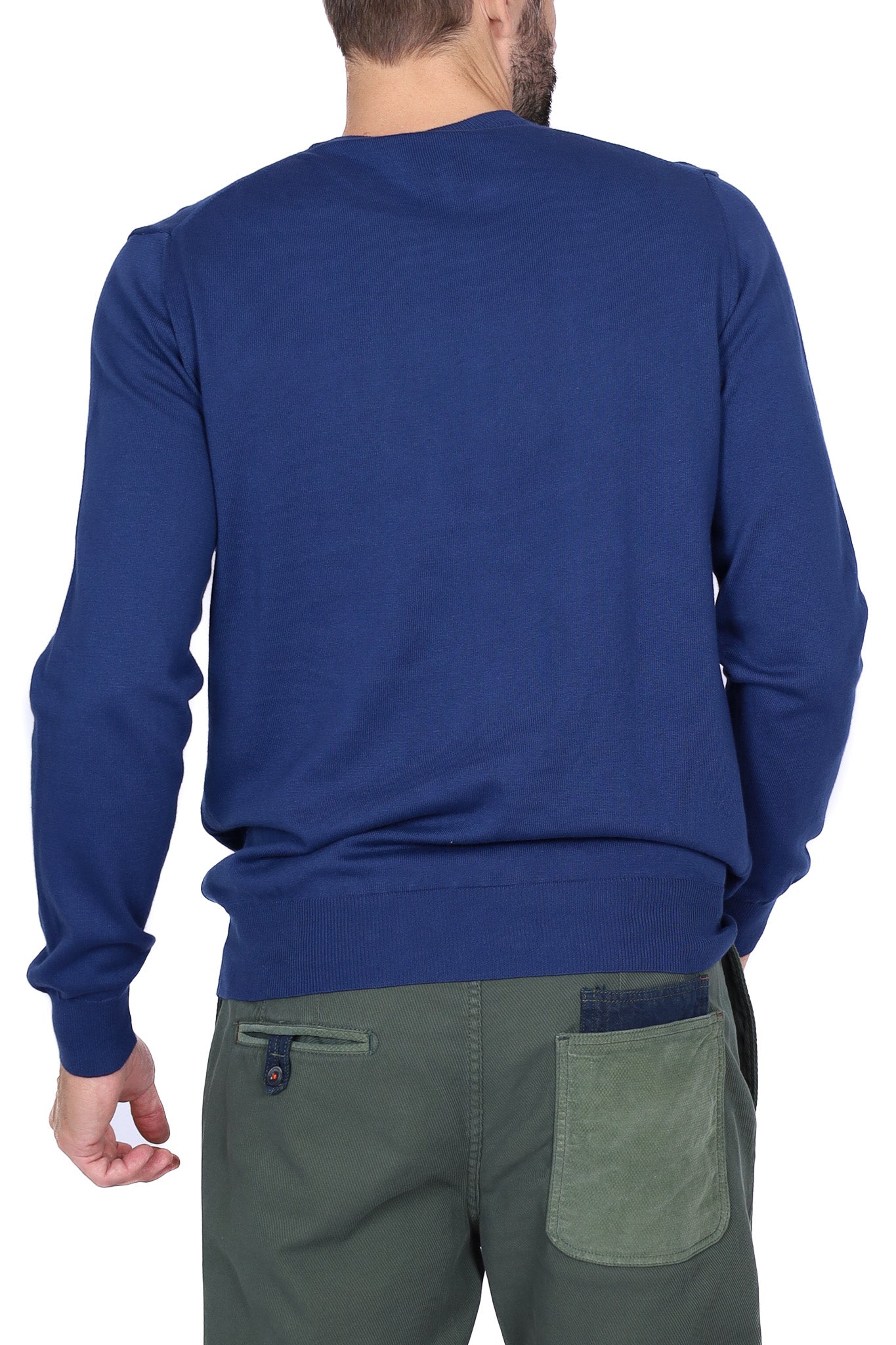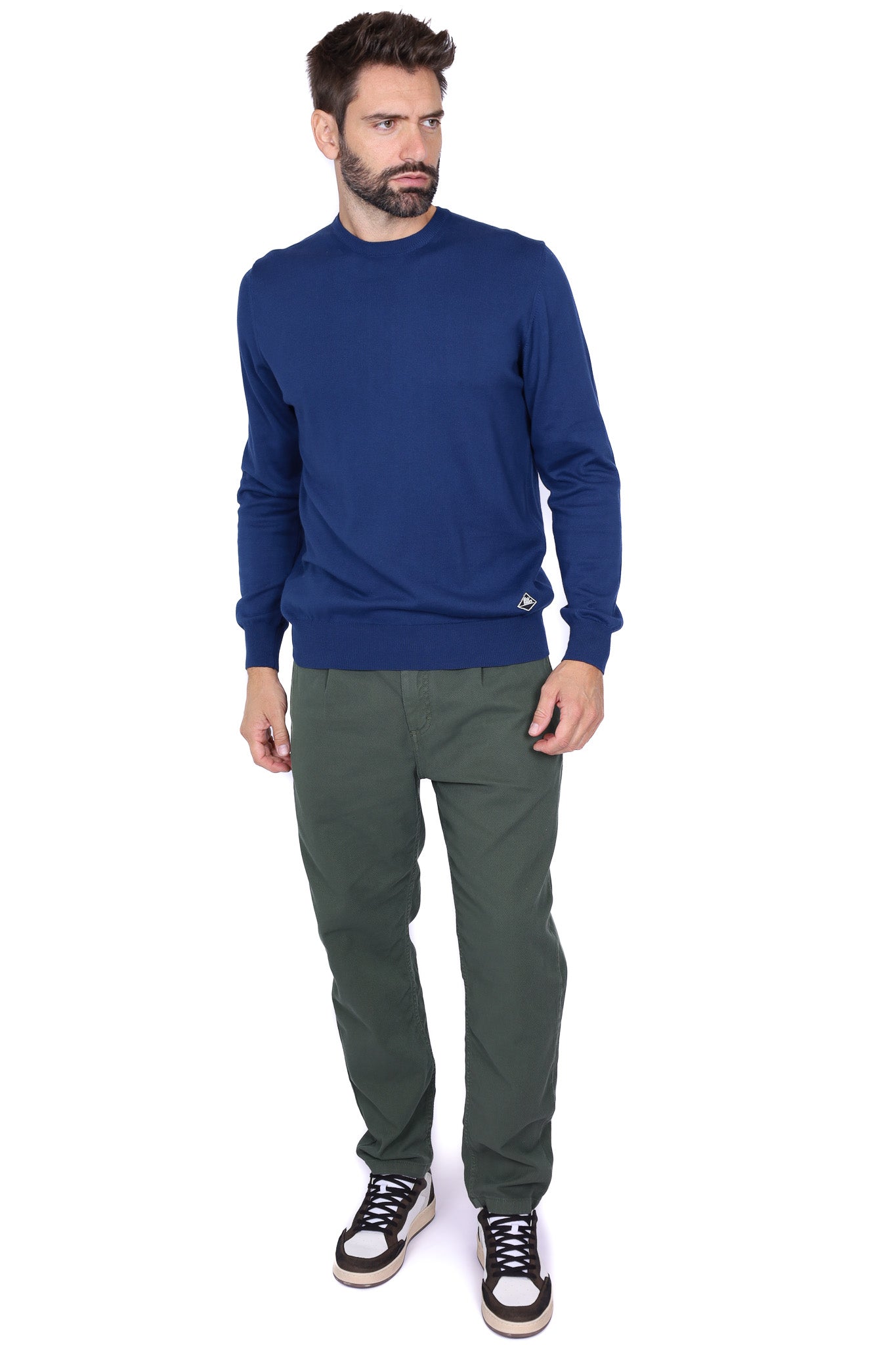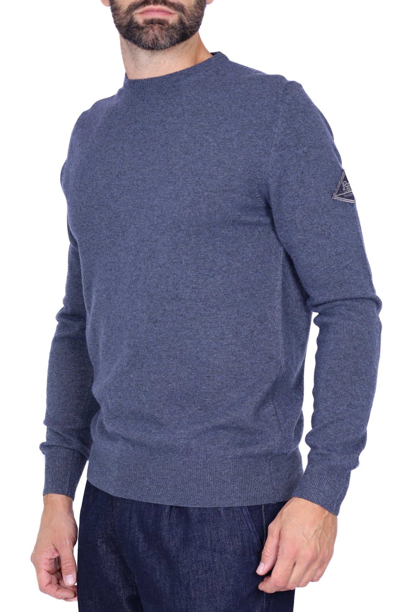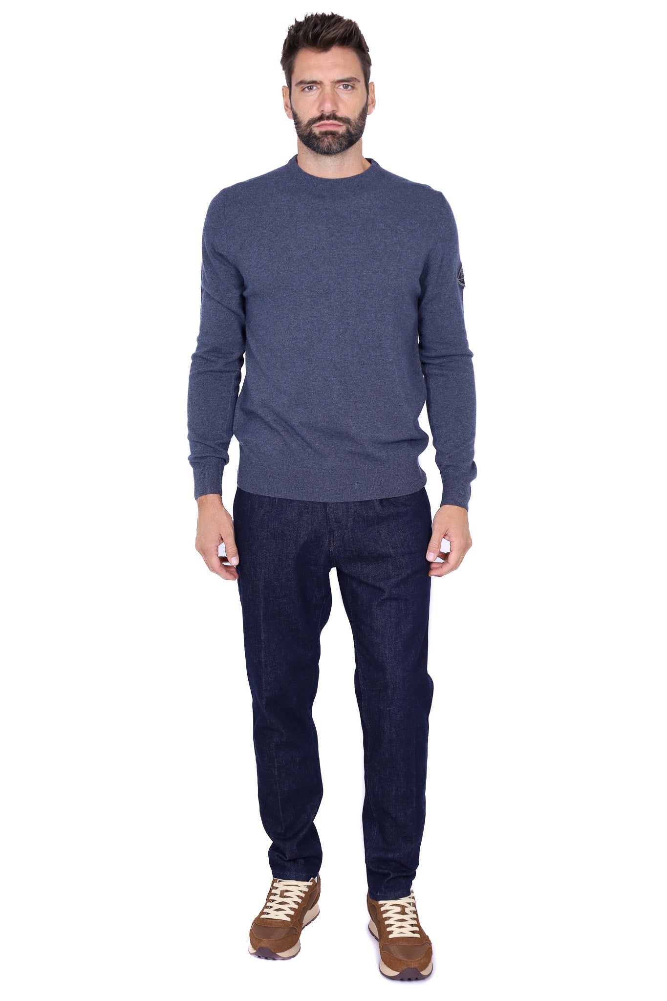 Maglia uomo girocollo in lana merino con patch blu