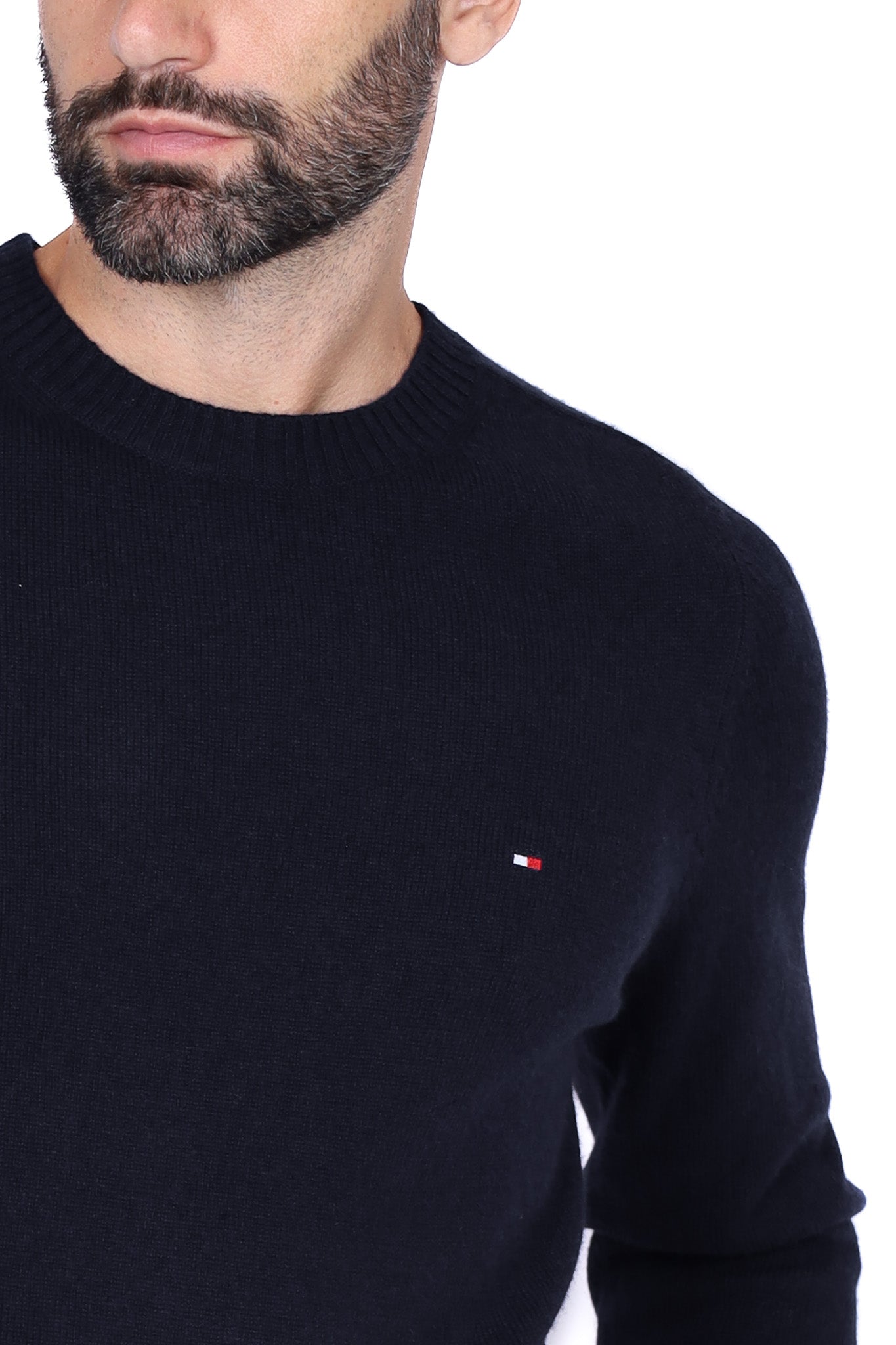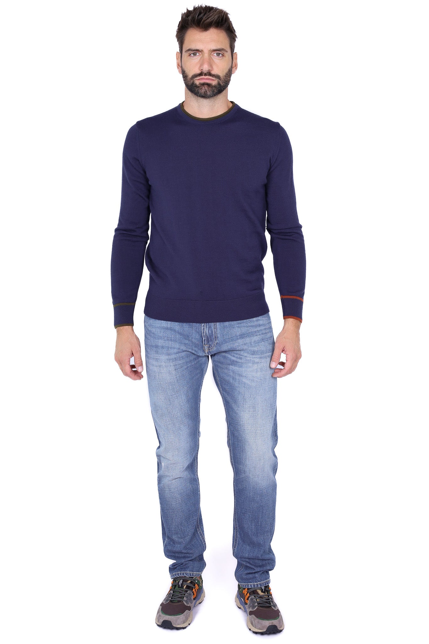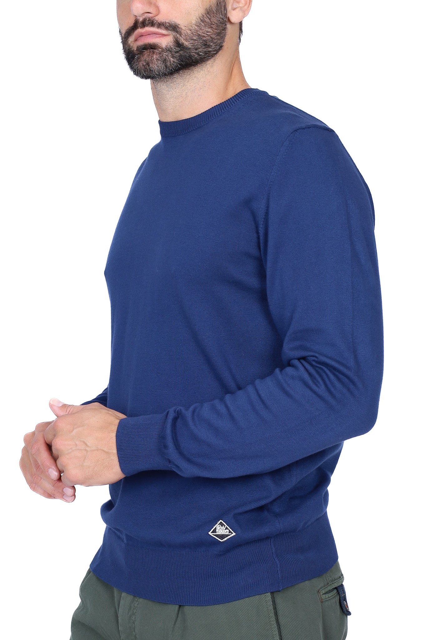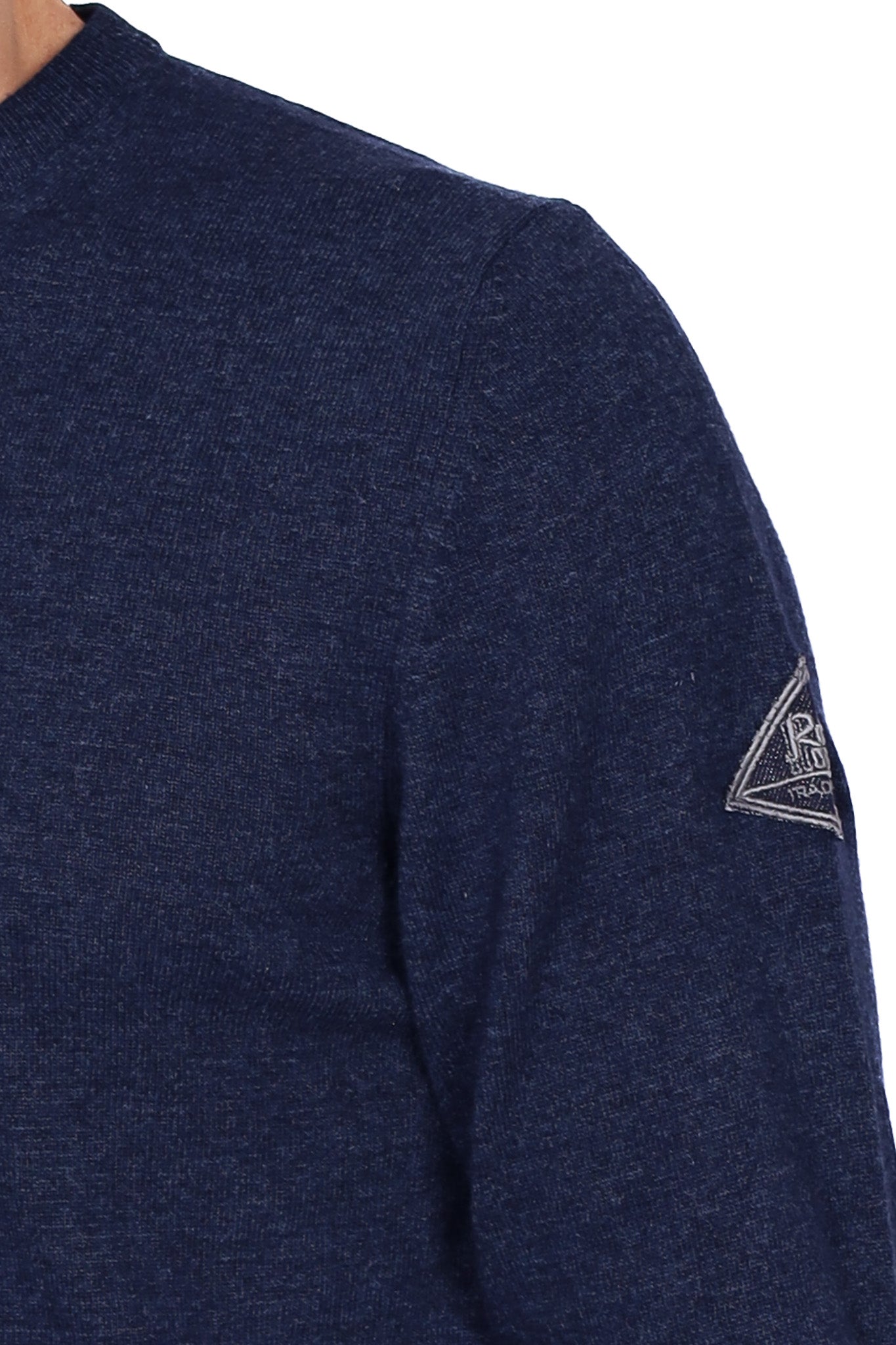 Maglia uomo girocollo in lana merino con patch blu