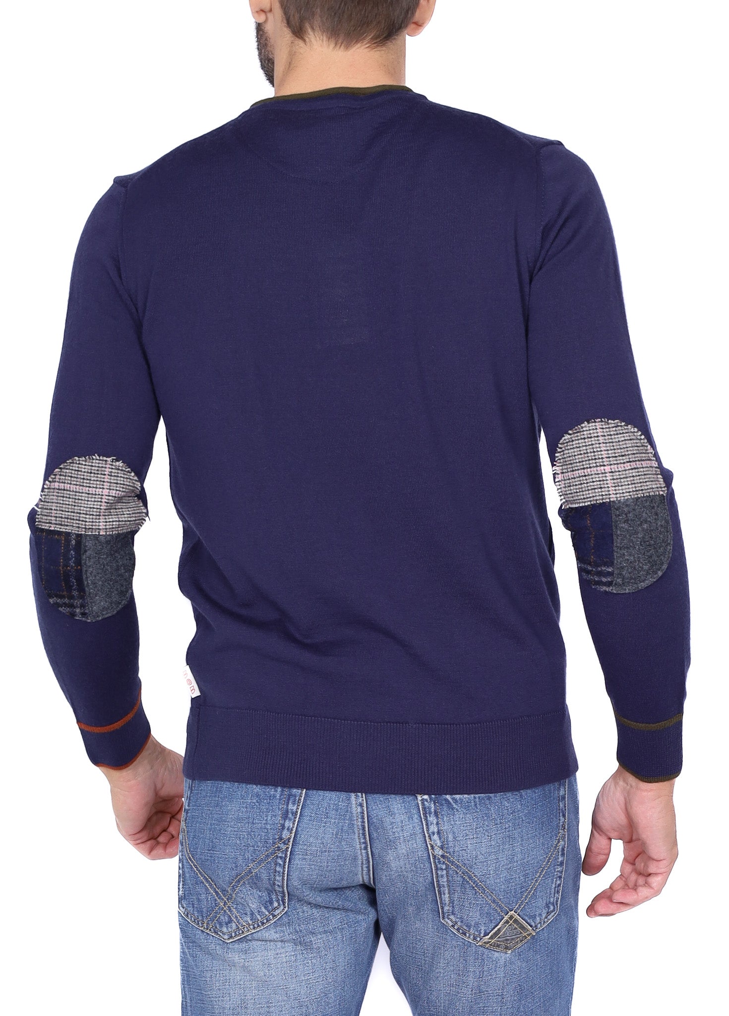 Maglia uomo girocollo con toppe patchwork blu