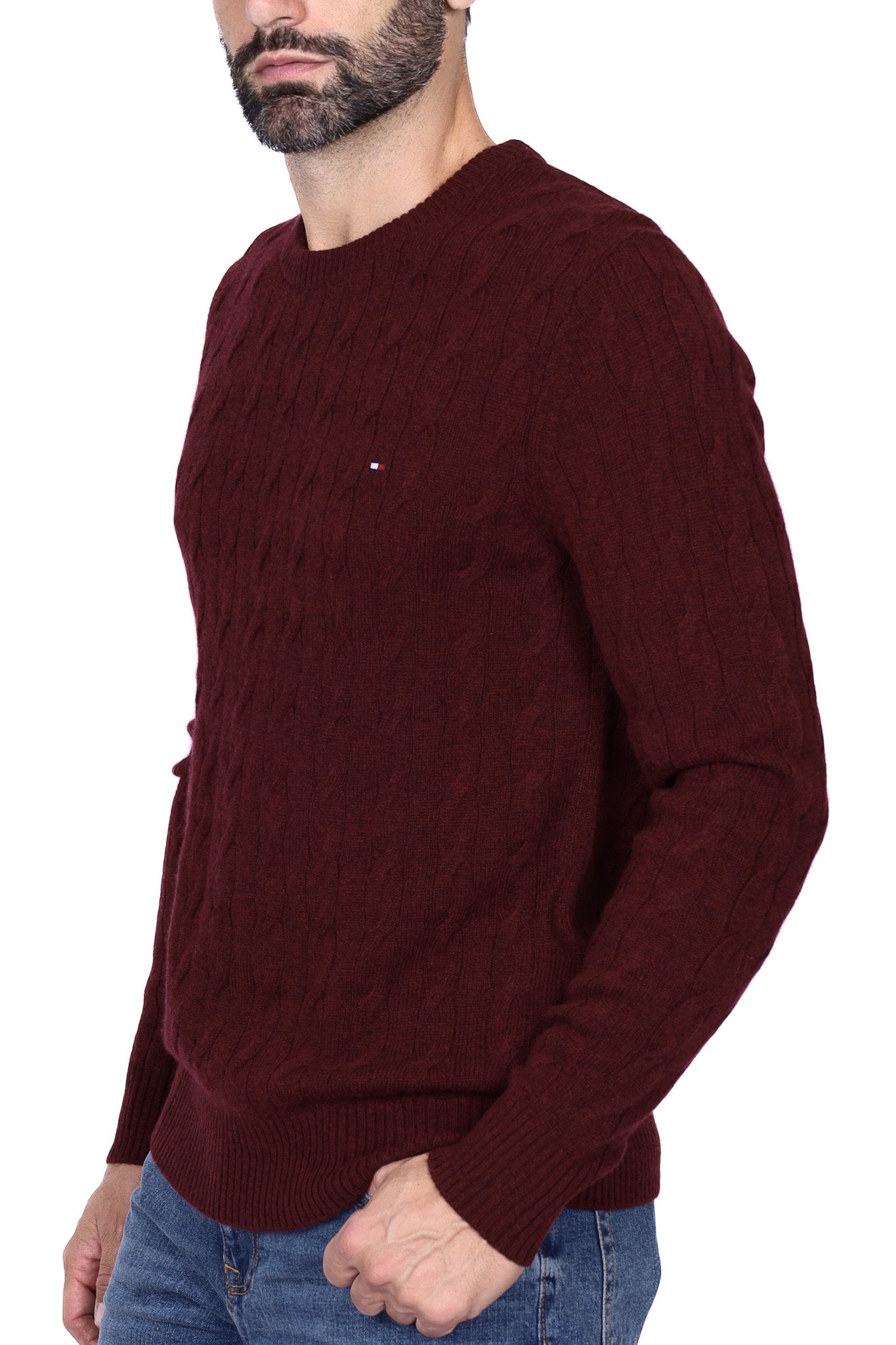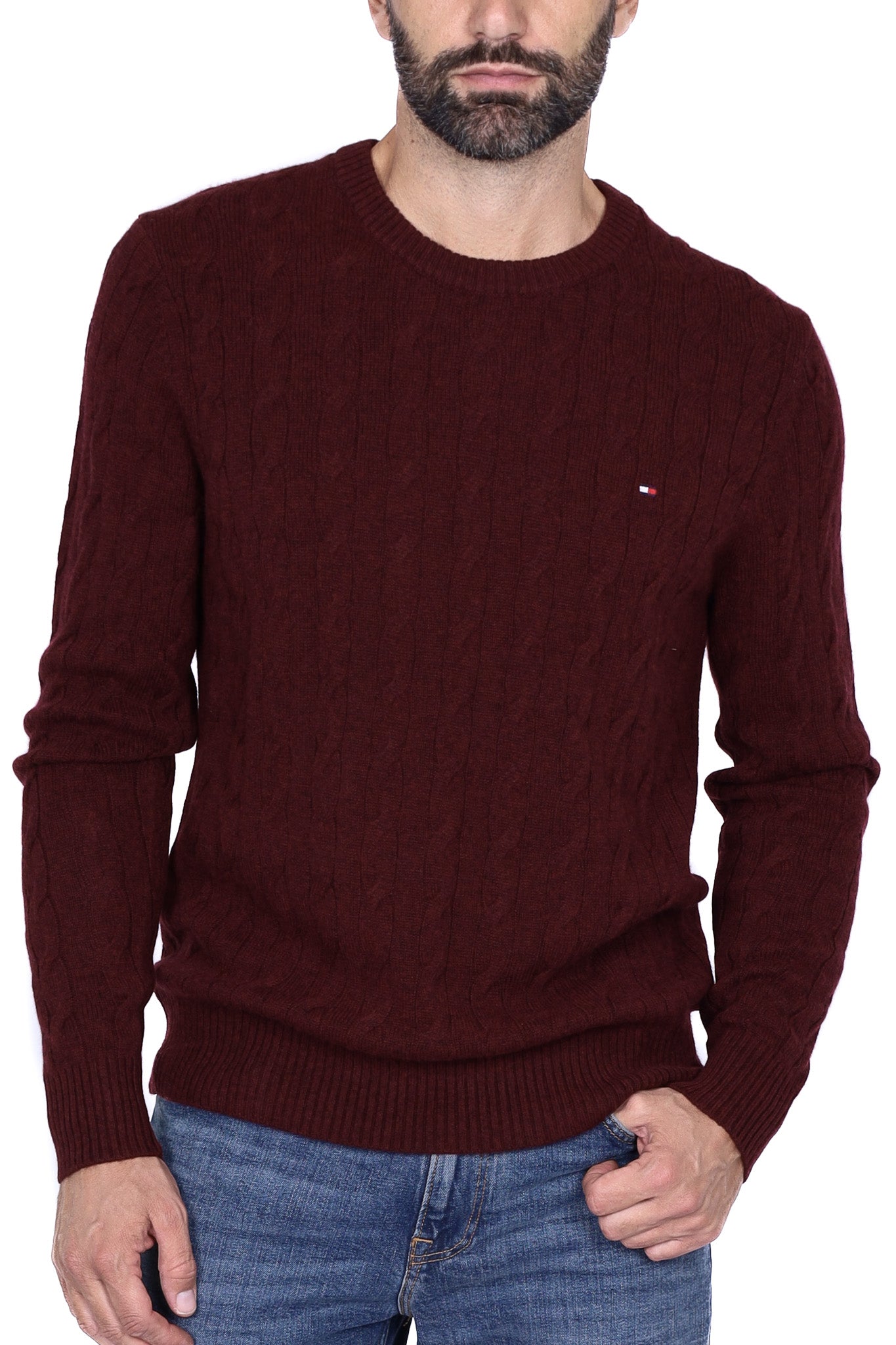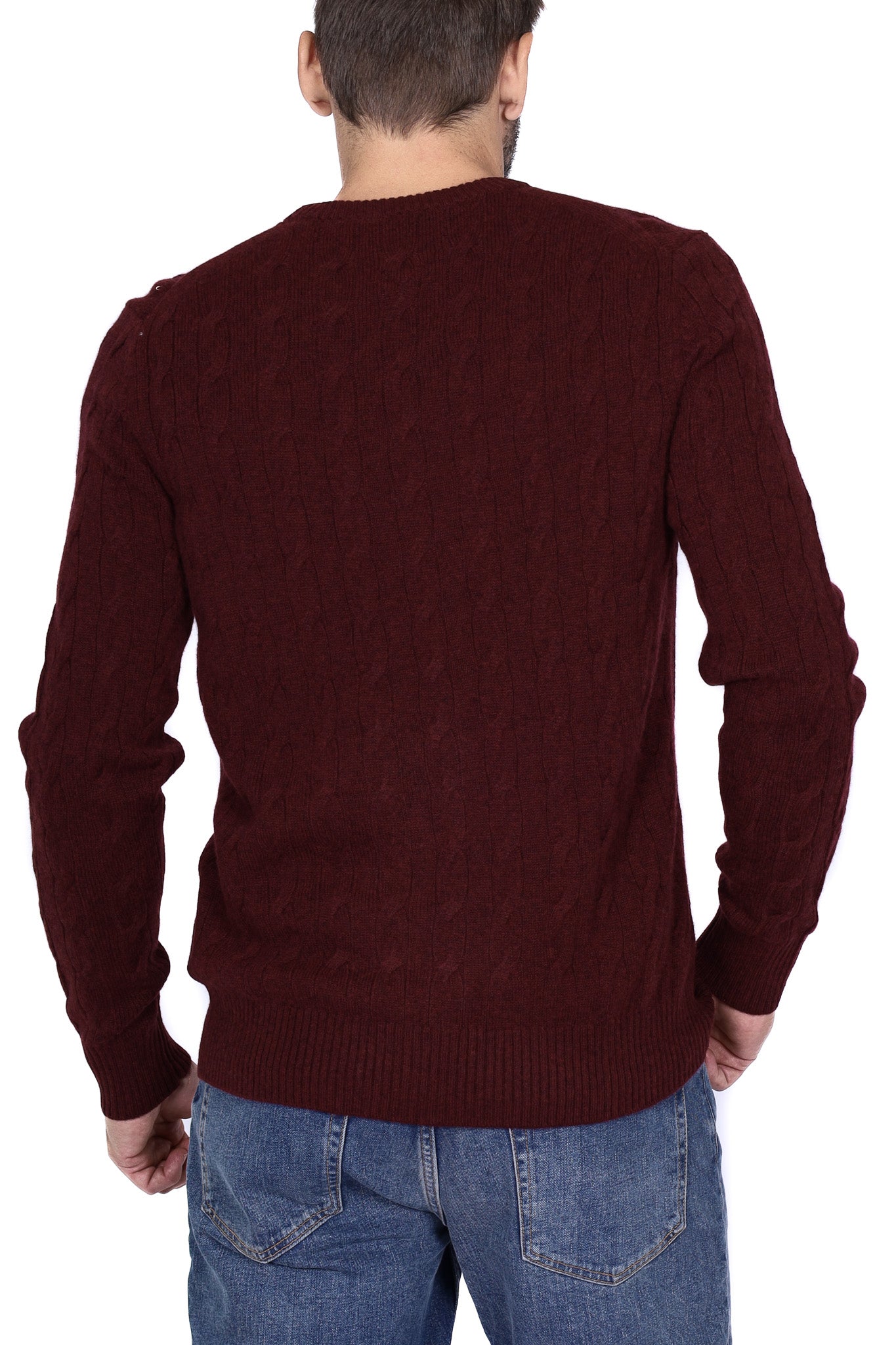 Maglione uomo treccia girocollo bordeaux