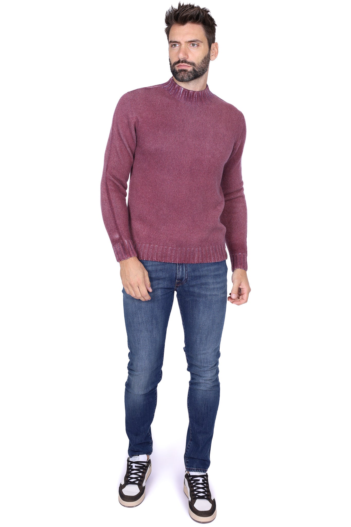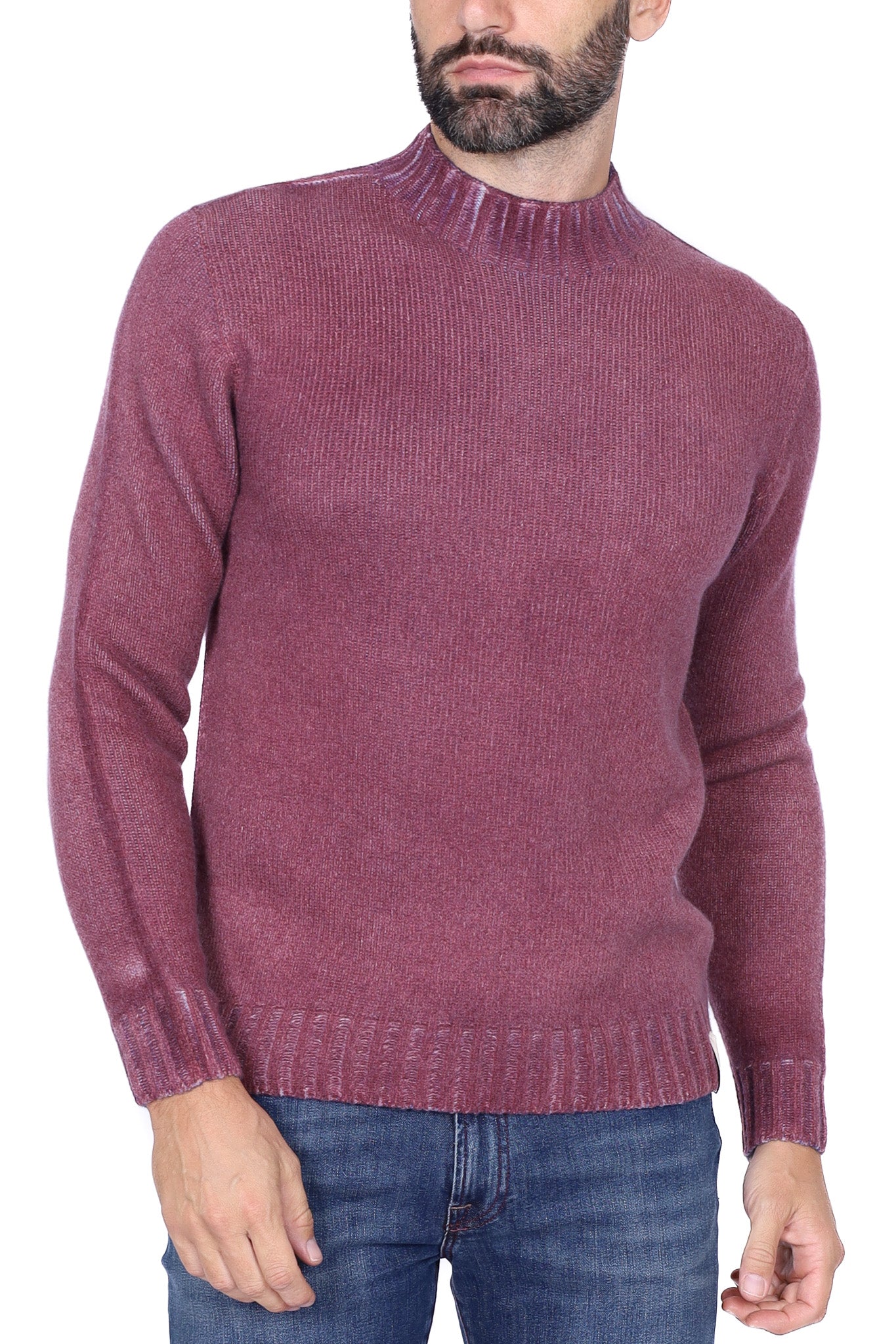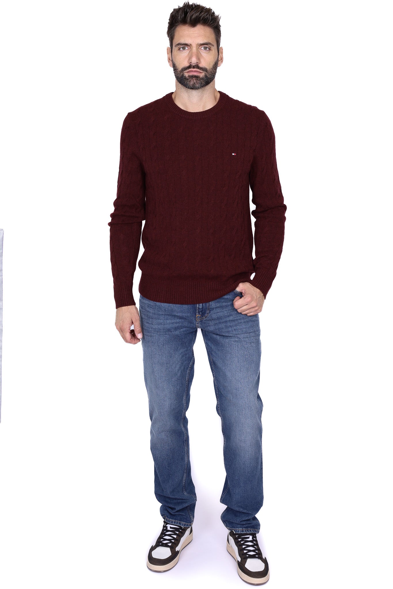 Maglione uomo treccia girocollo bordeaux