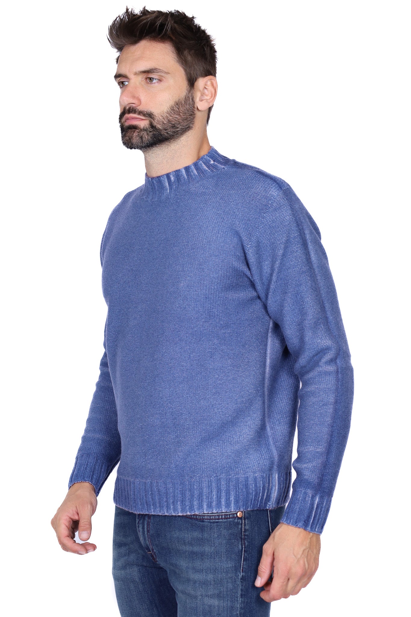 Maglia uomo girocollo in lana blu