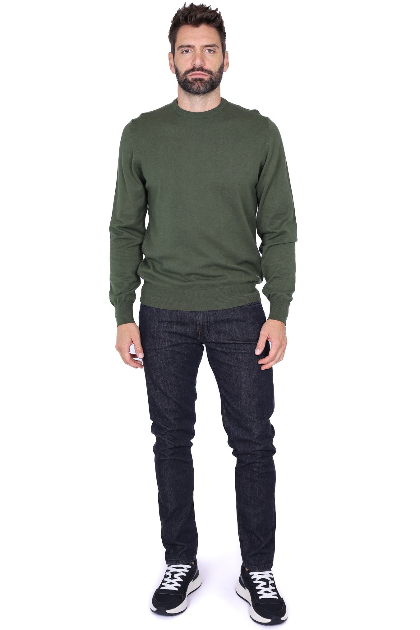 Maglia uomo girocollo in lana merino verde