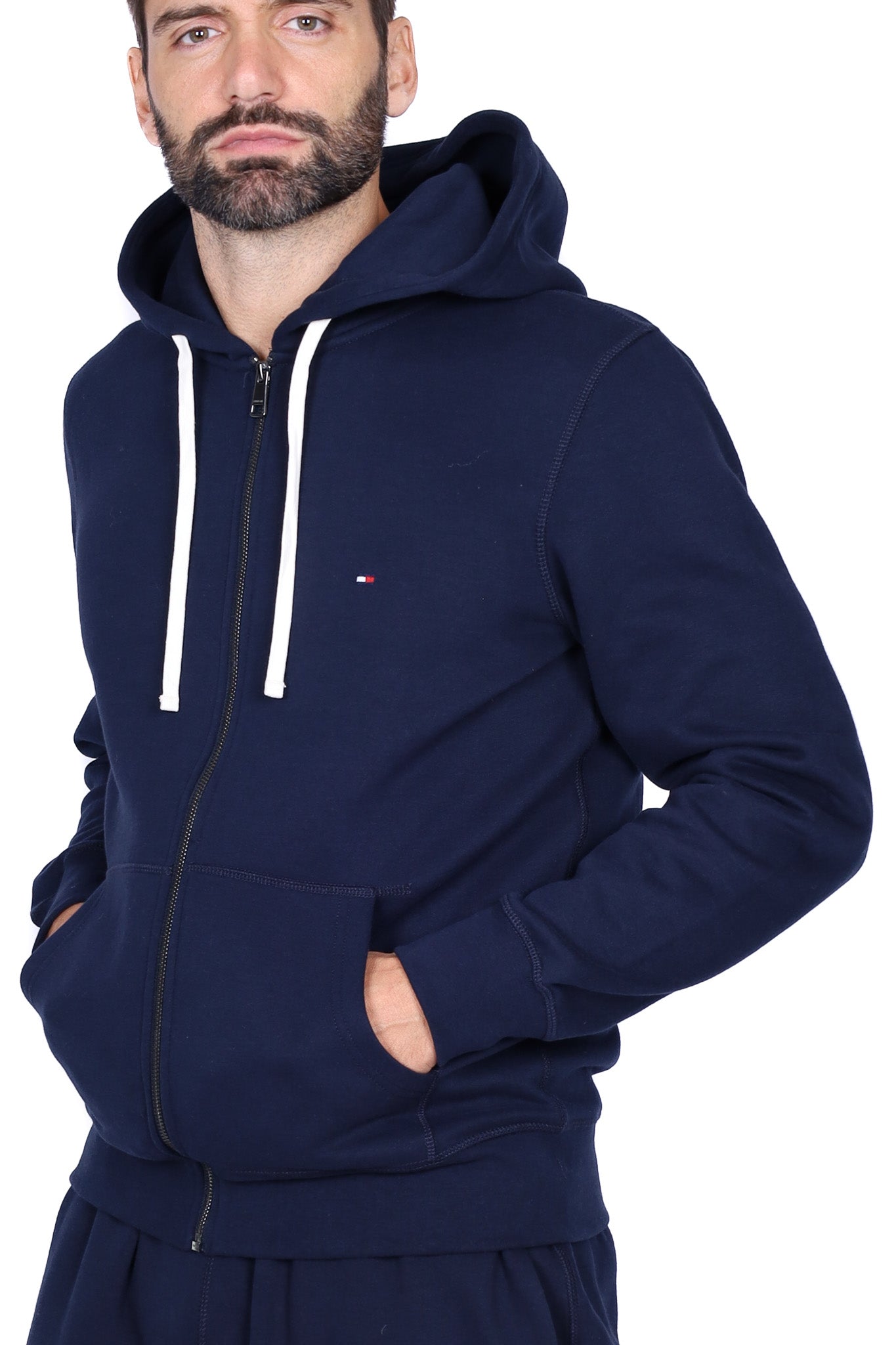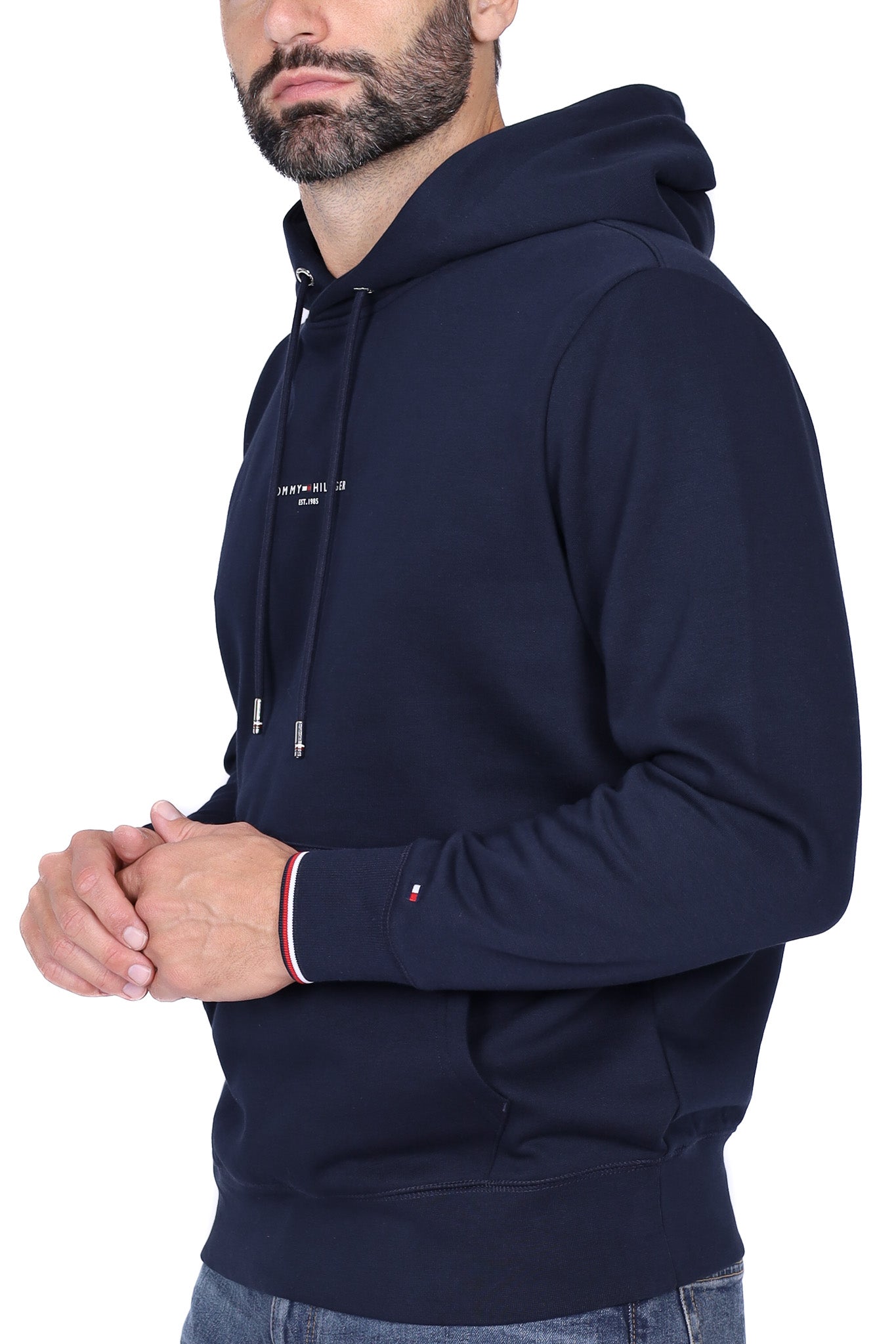 Felpa cappuccio uomo con bandiera logo blu