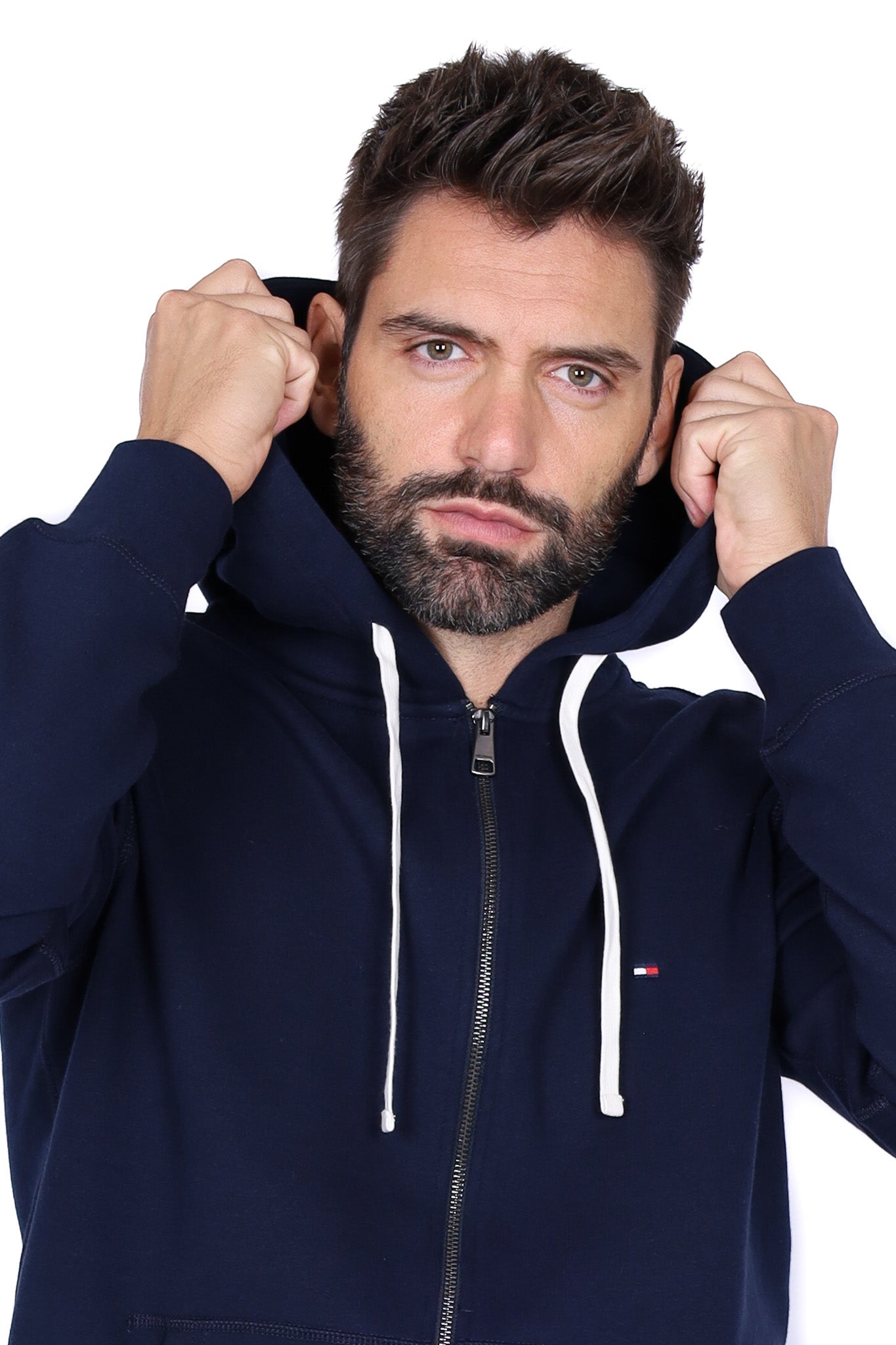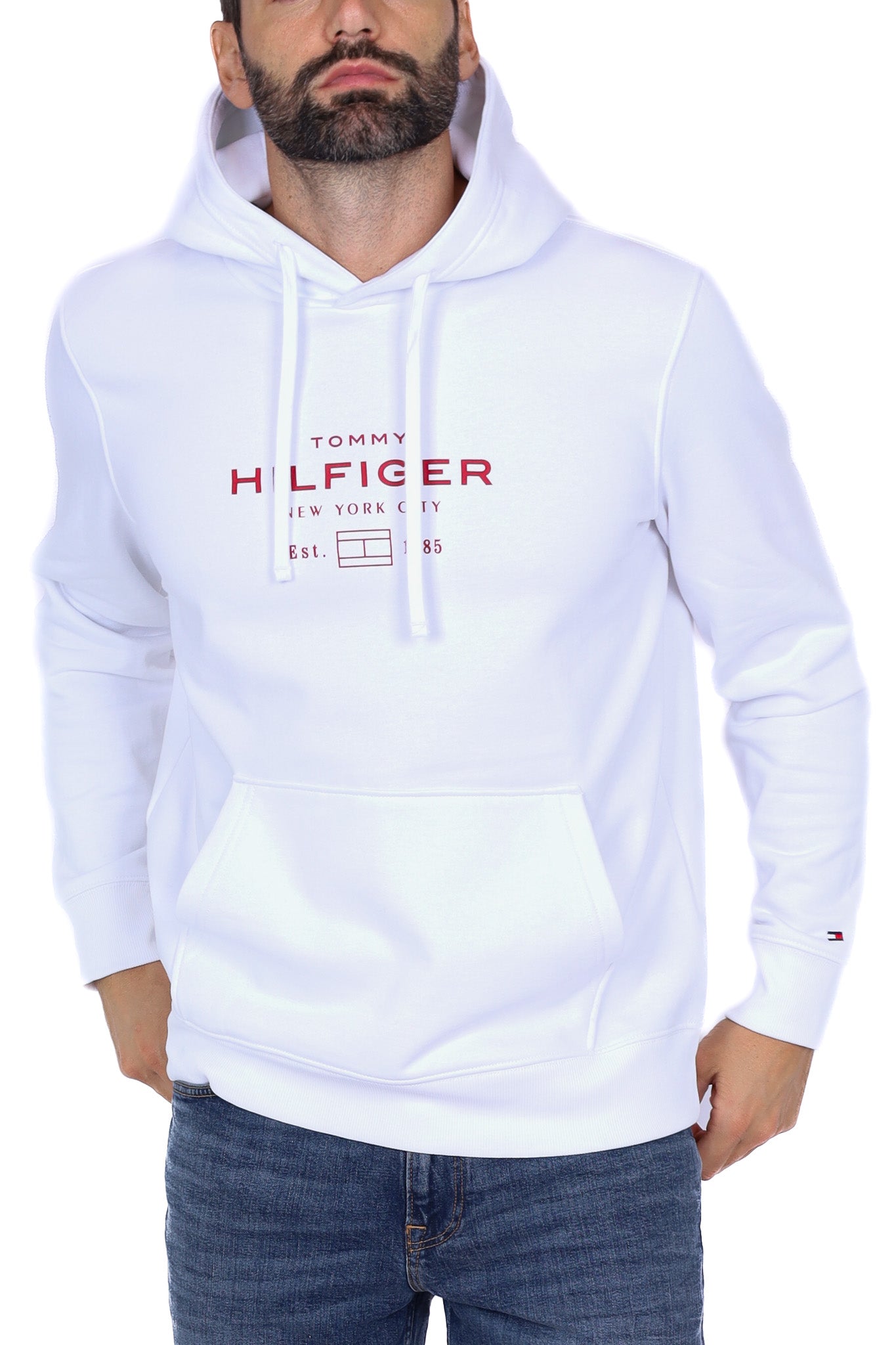 Felpa uomo con cappuccio logo frontale bianco