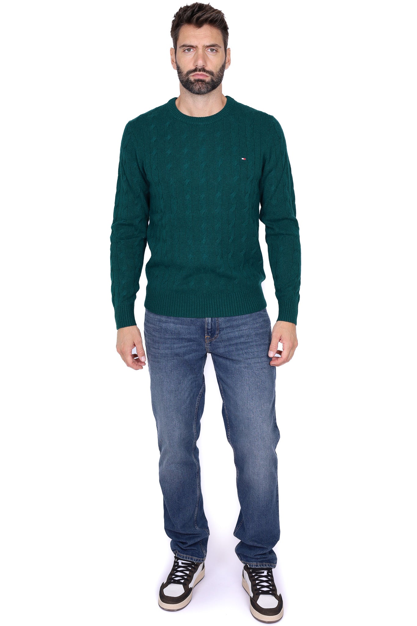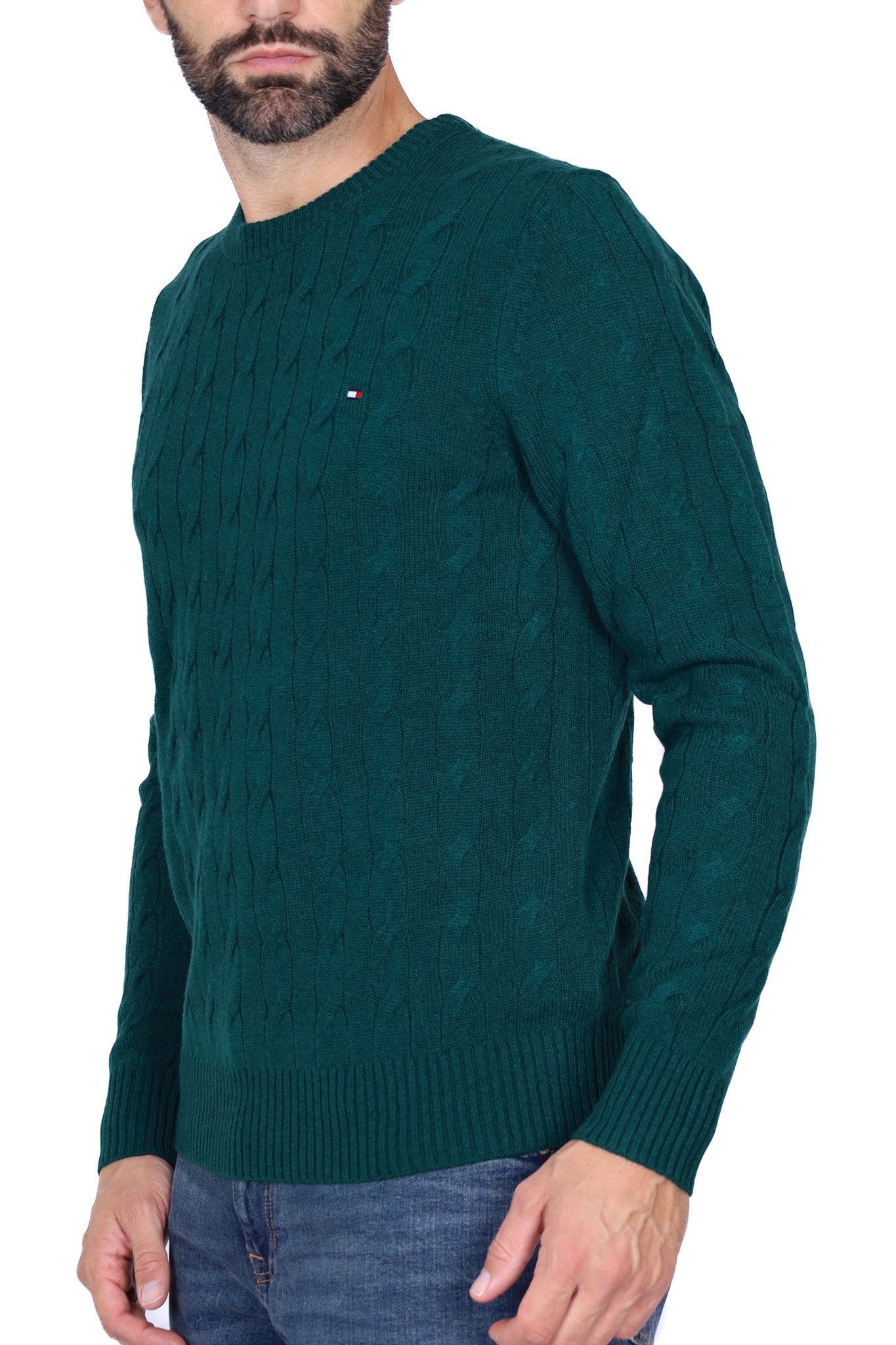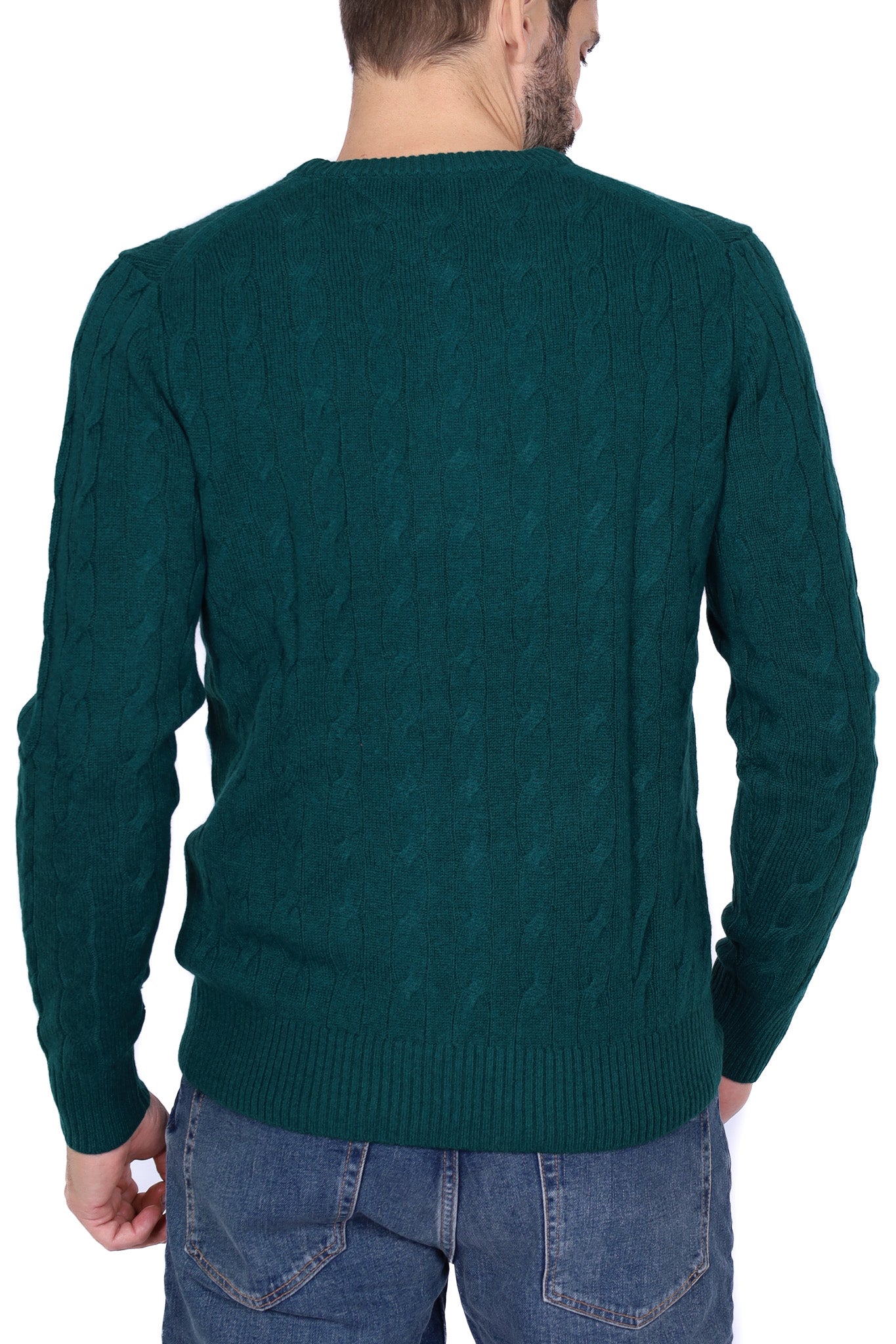 Maglione uomo treccia girocollo verde