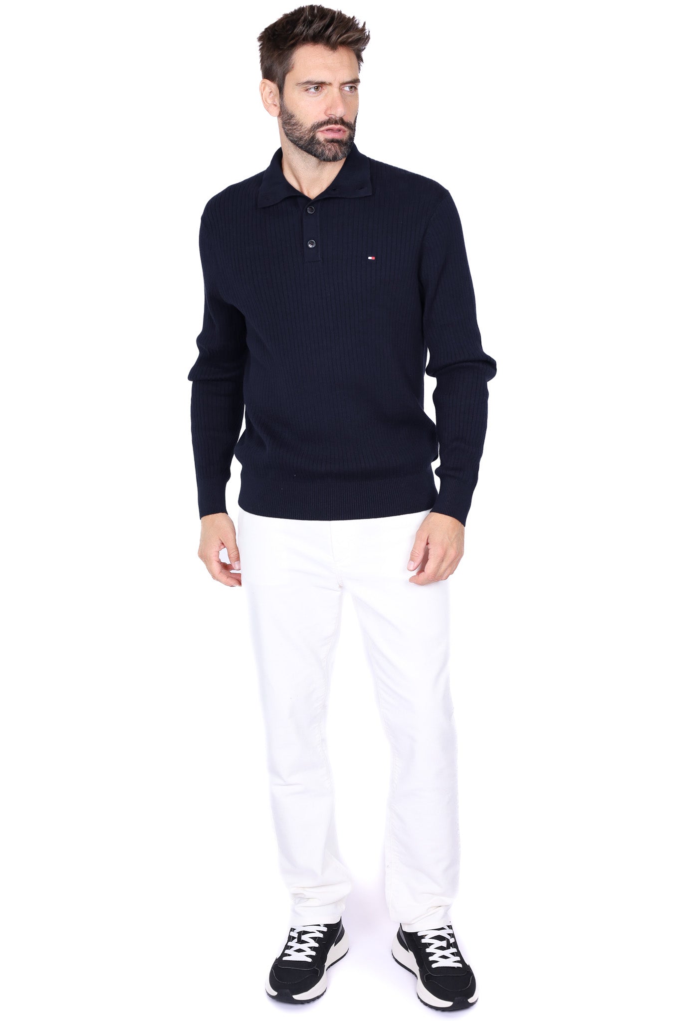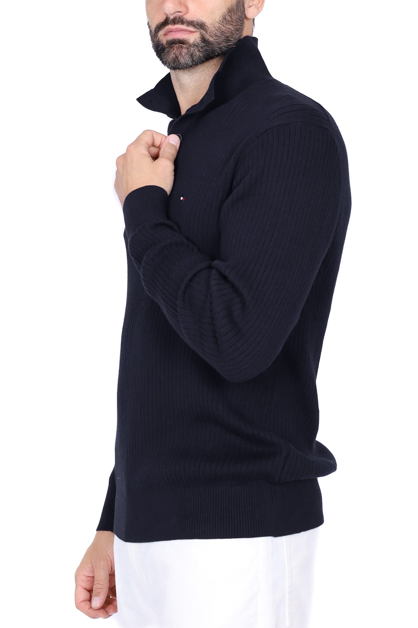 Maglia polo uomo lana a coste blu