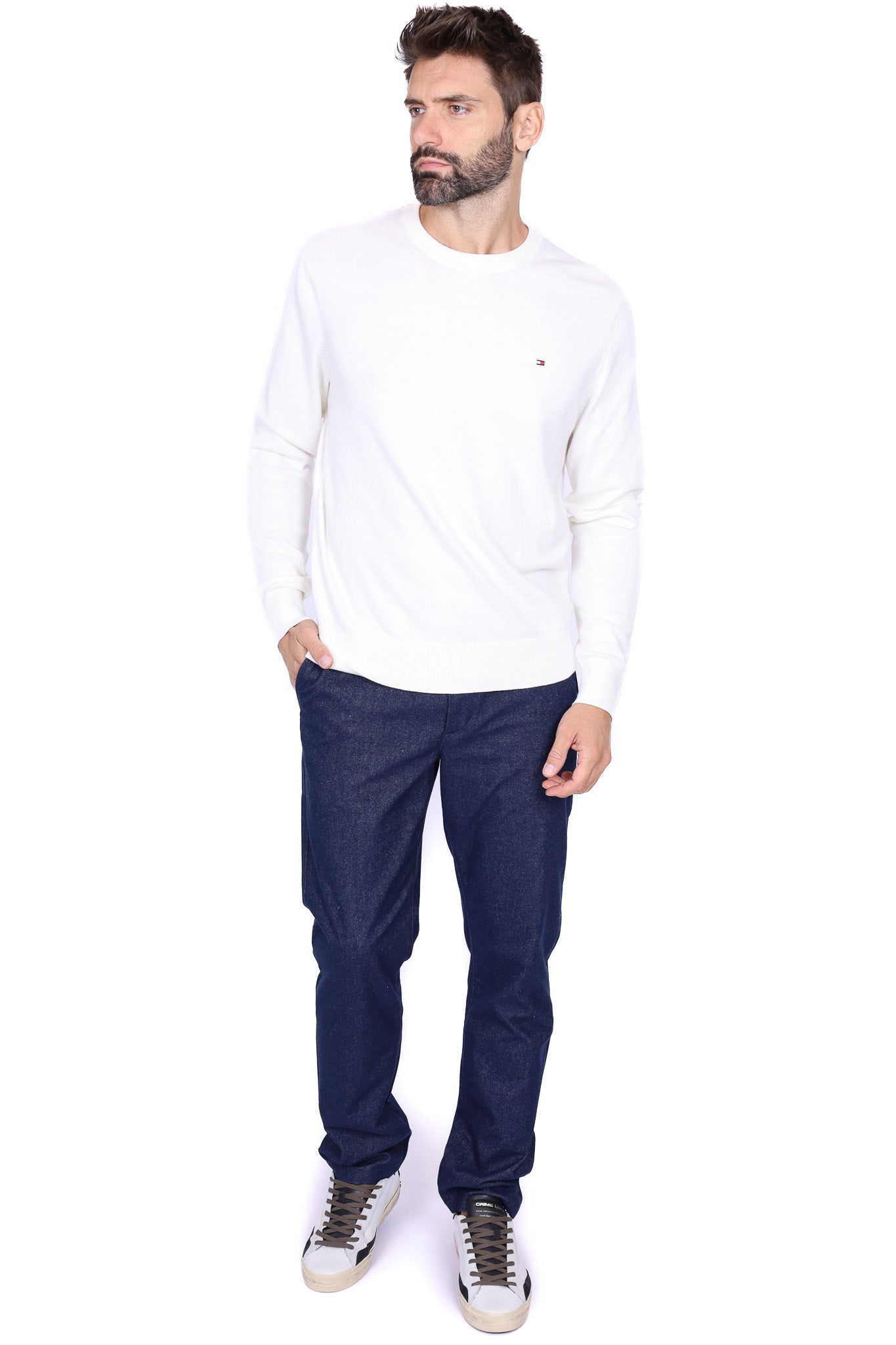 Maglia uomo girocollo in cotone bianco