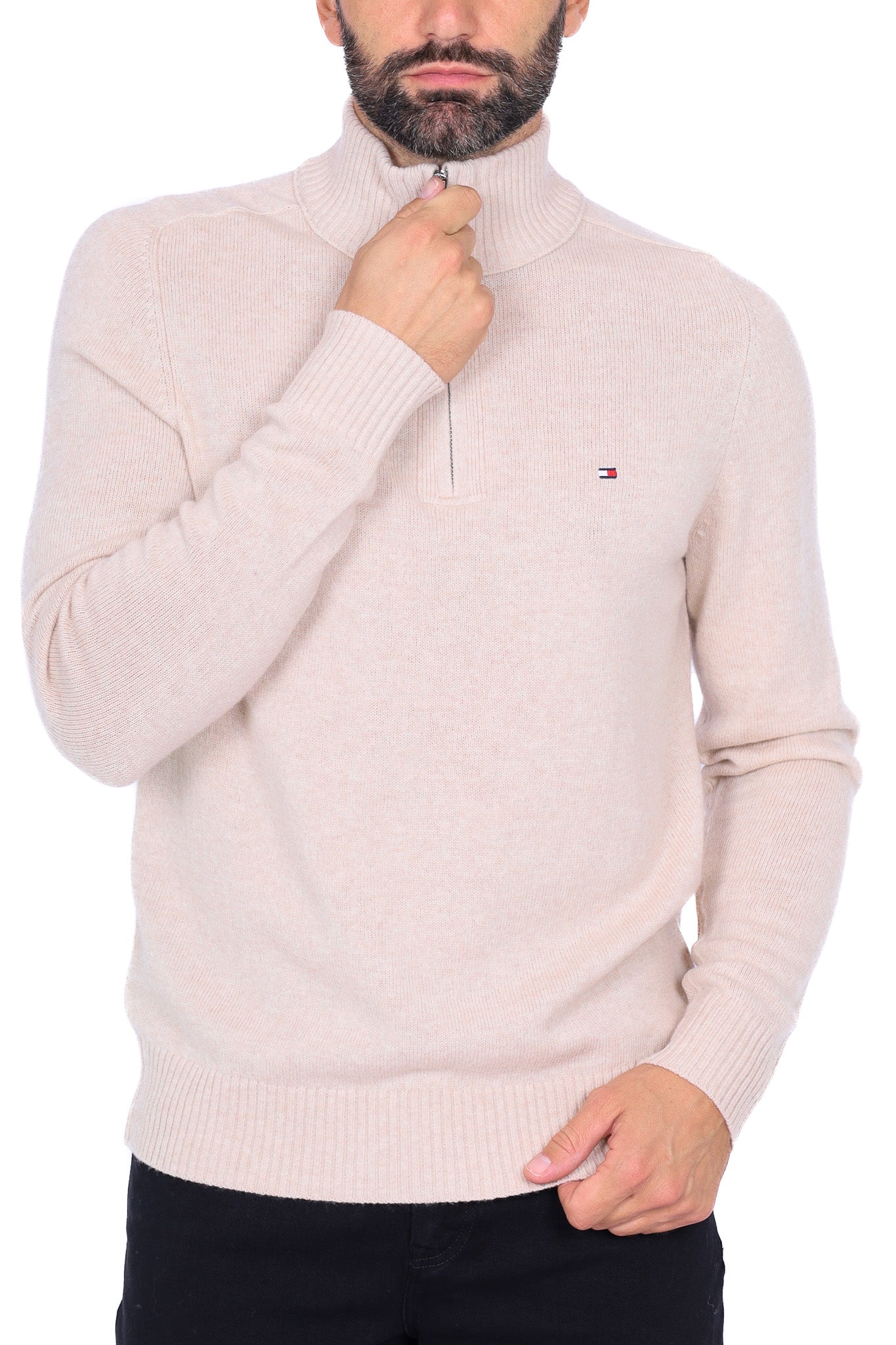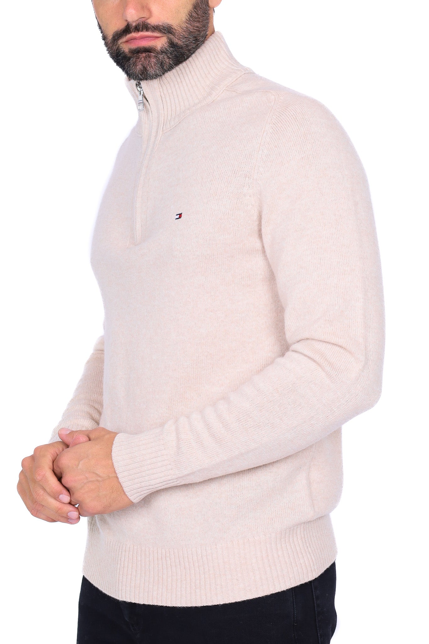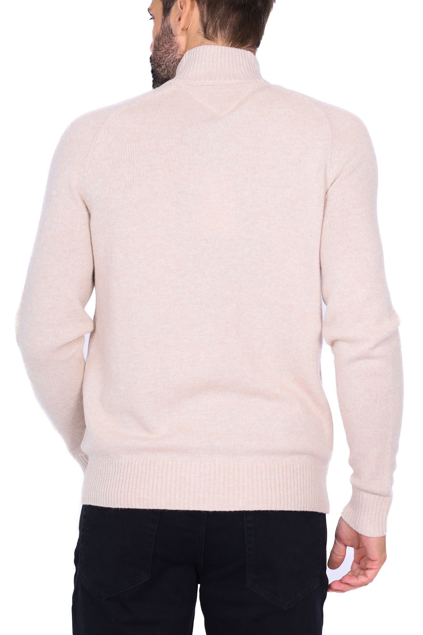 Maglia uomo collo alto zip in lana beige