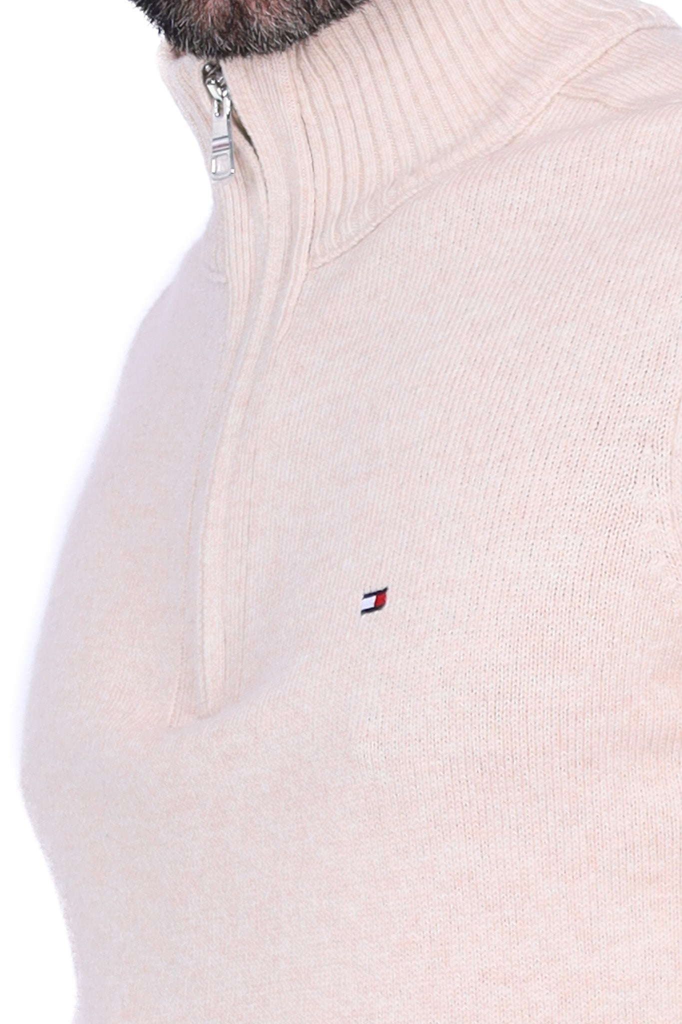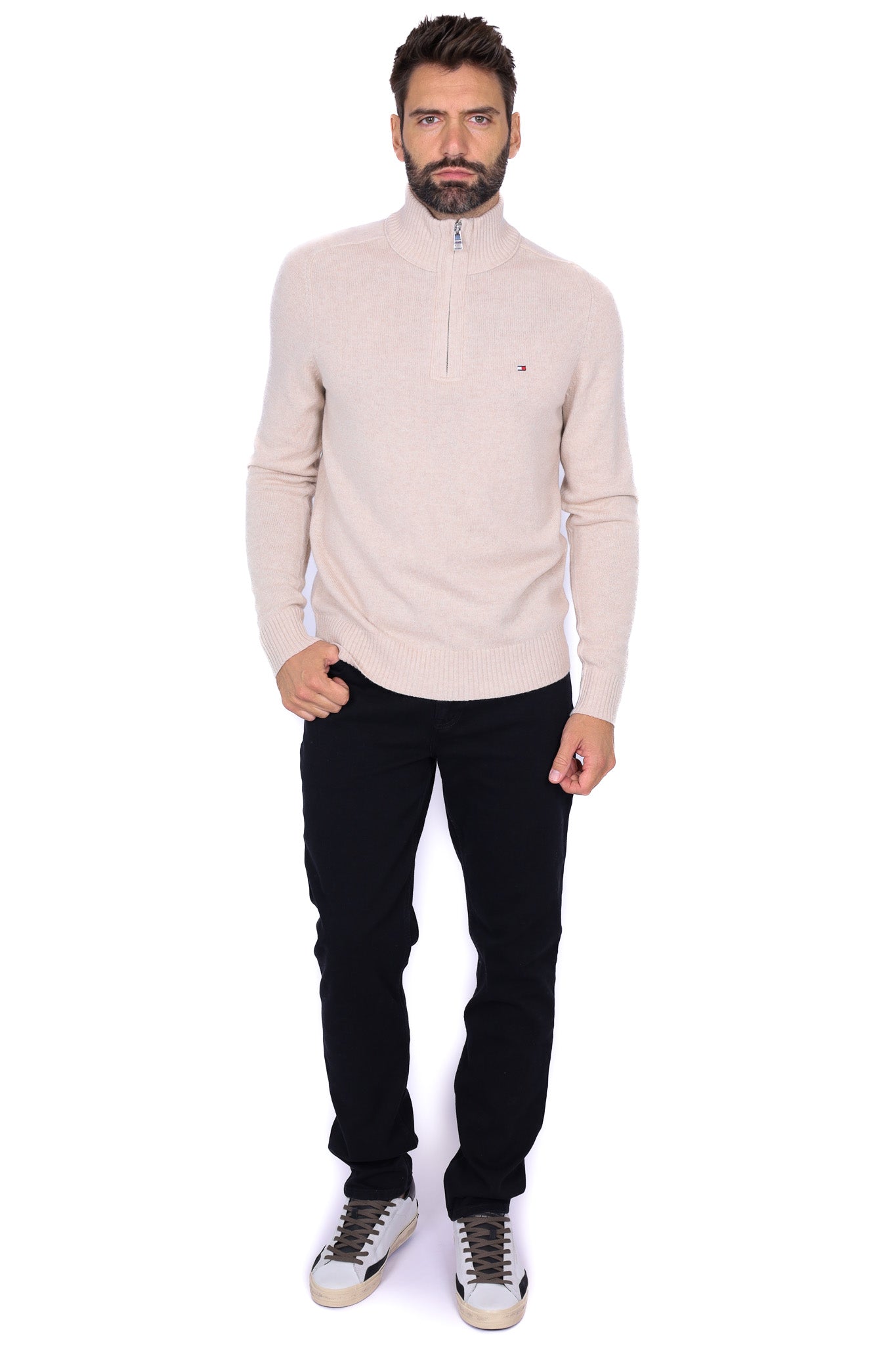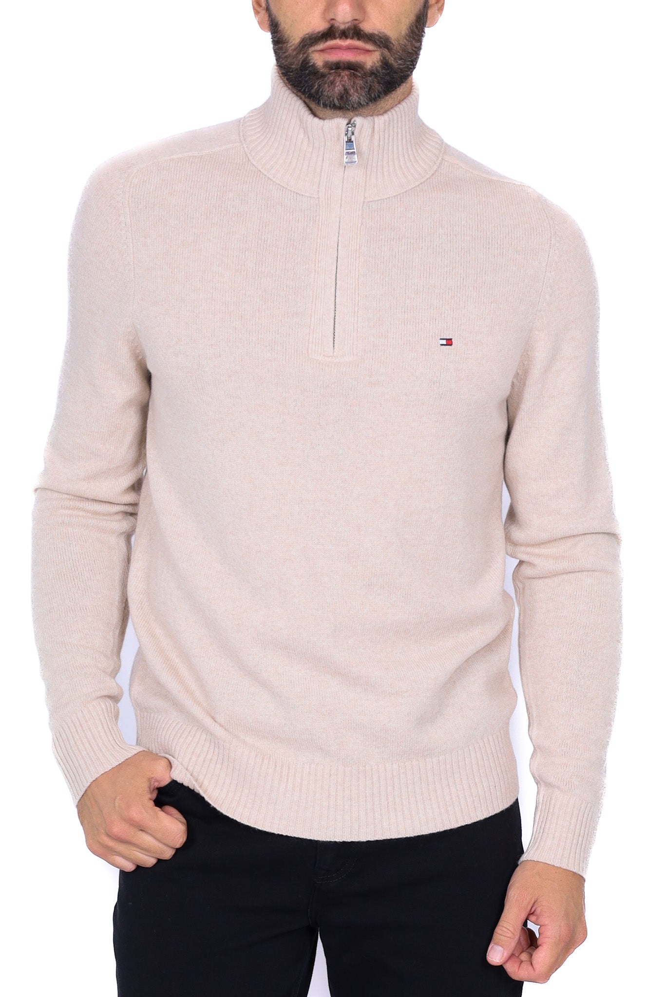 Maglia uomo collo alto zip in lana beige