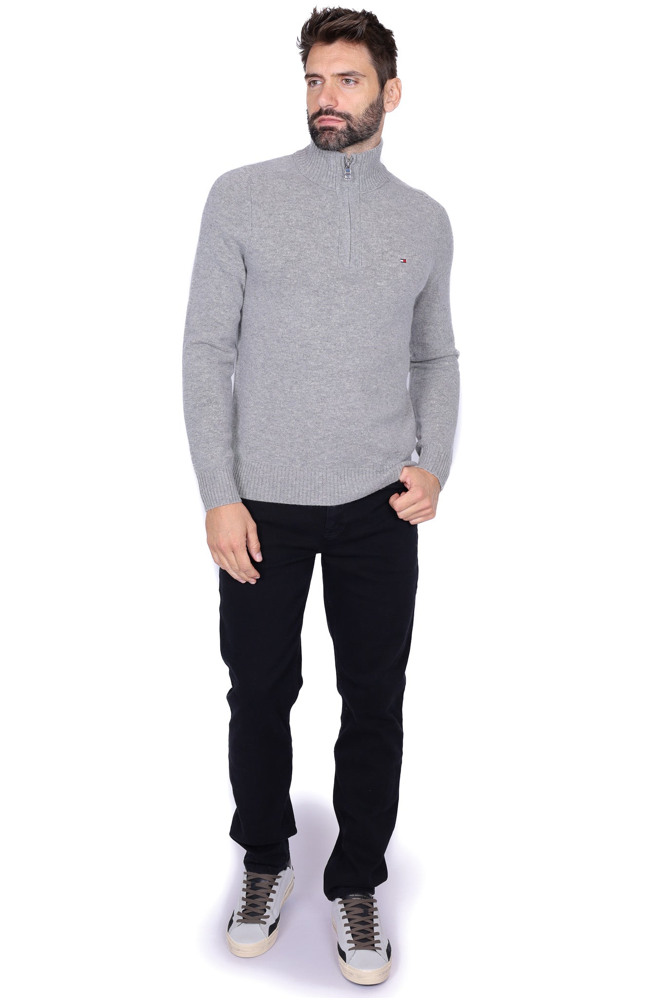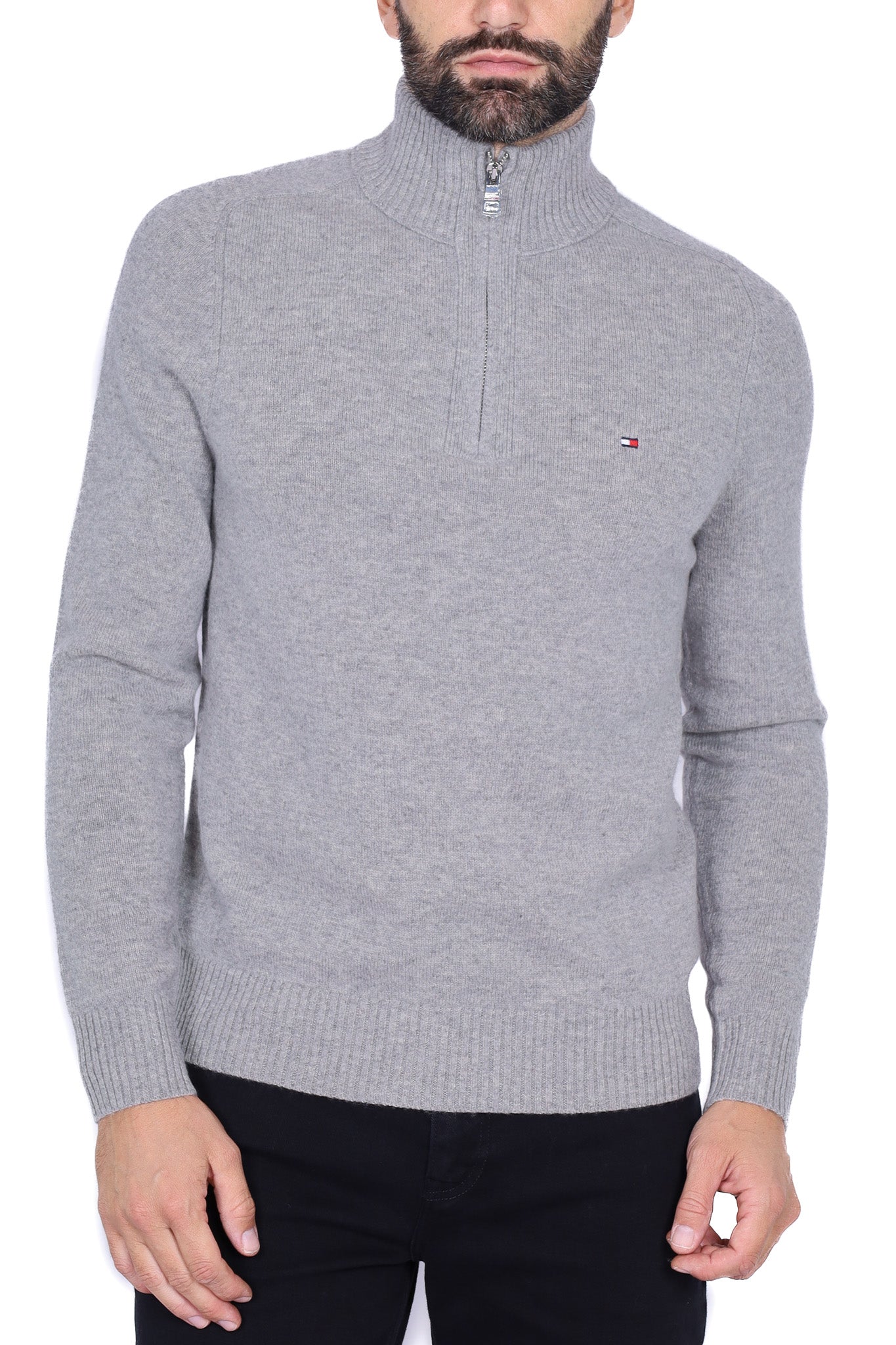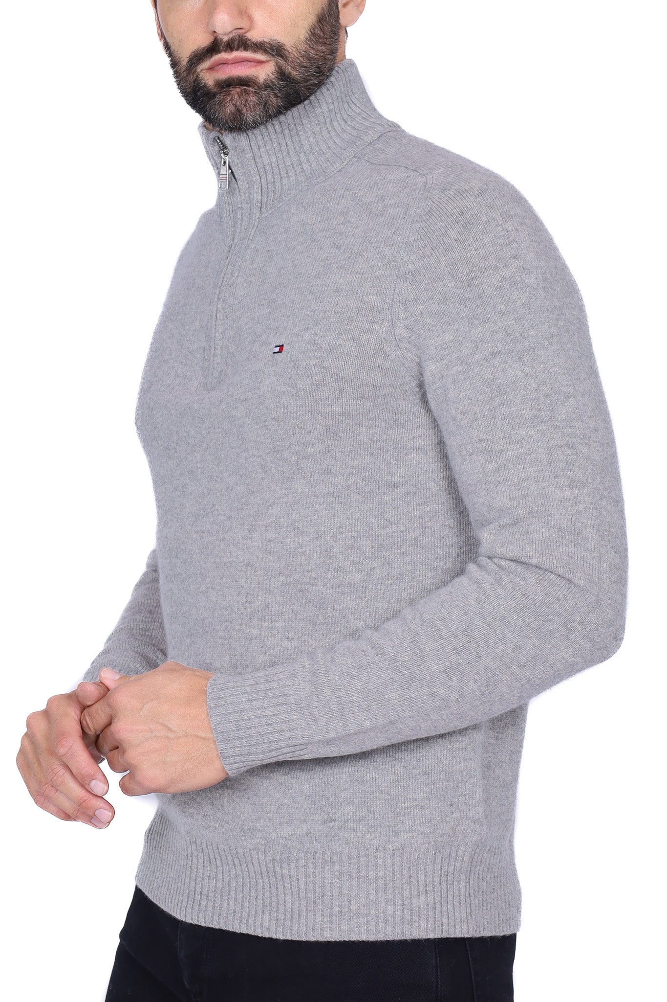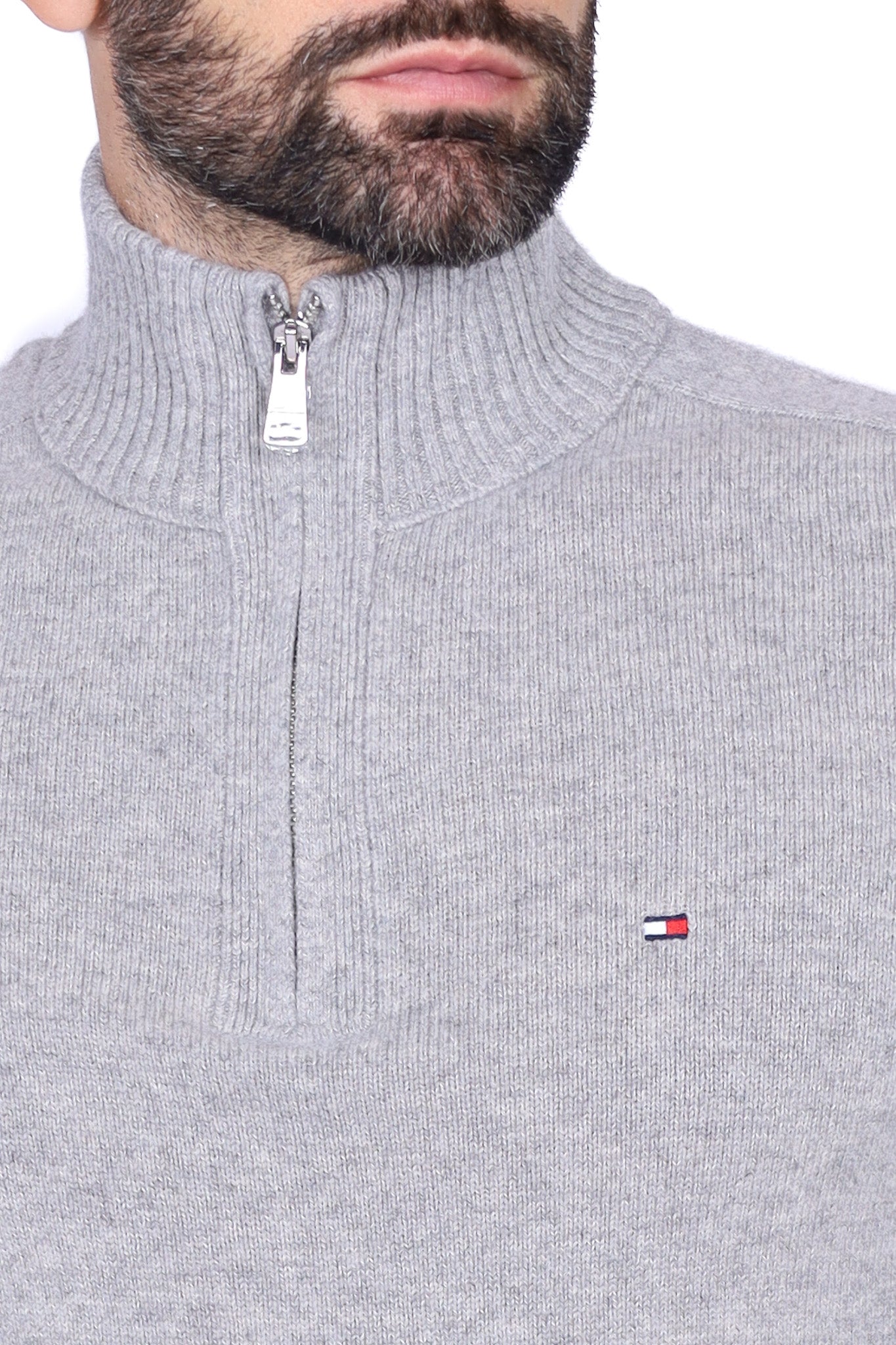 Maglia uomo collo alto zip in lana grigio