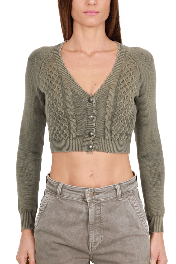 Cardigan corto a trecce verde