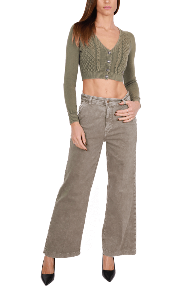 Cardigan corto in maglia effetto delavé lavorazione a trecce