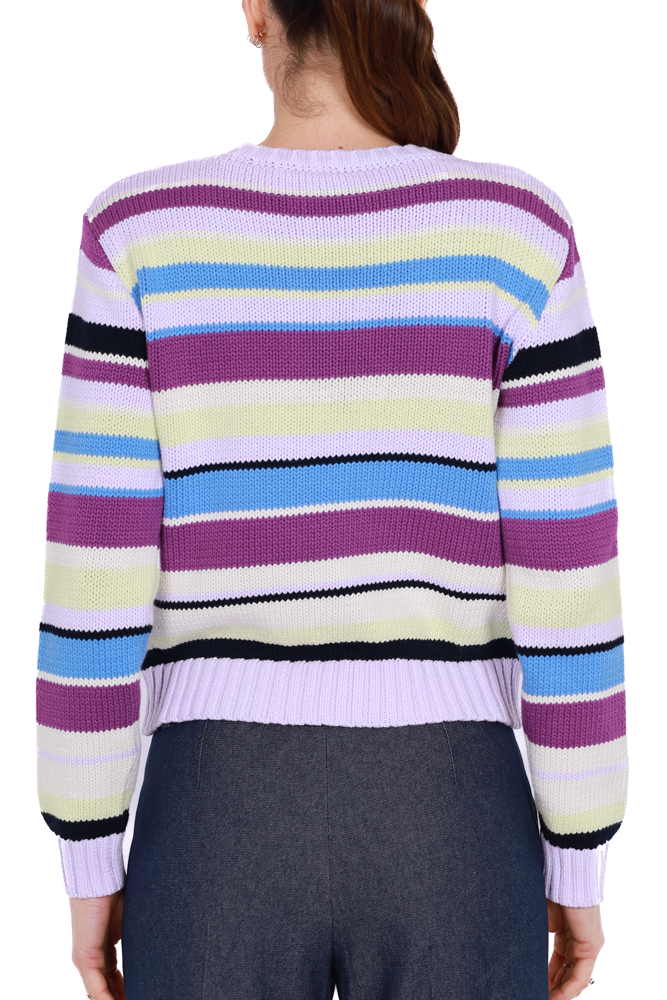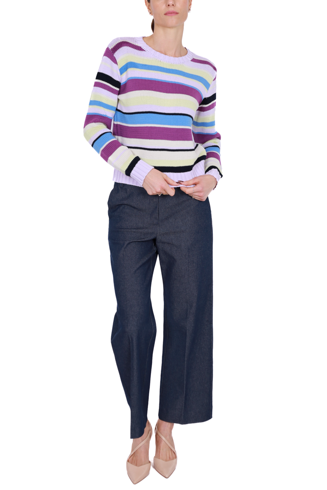 Maglia girocollo a maniche lunghe in misto cotone fantasia a righe
