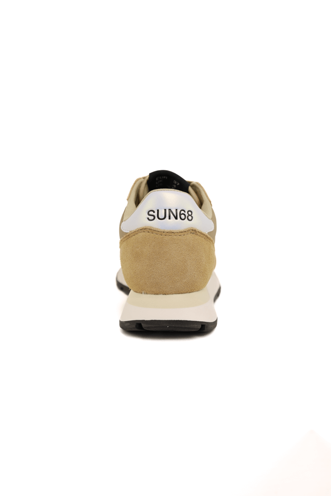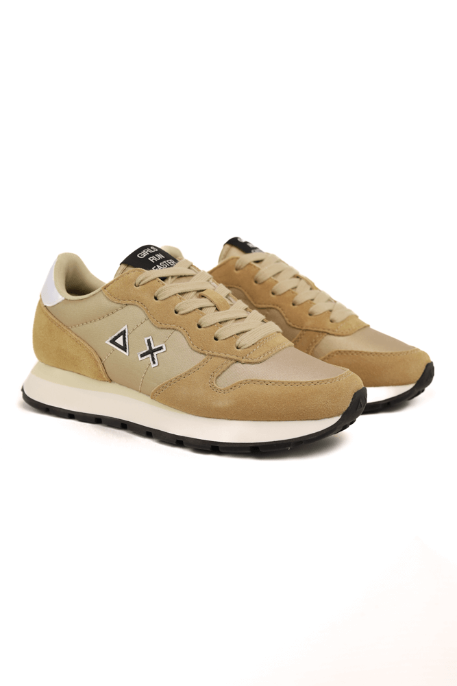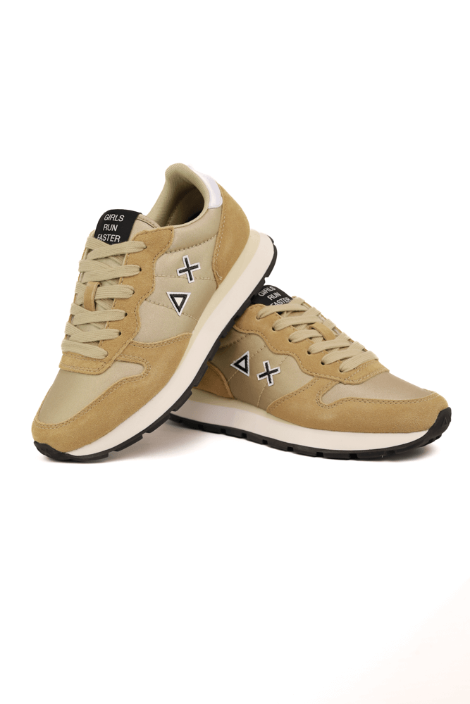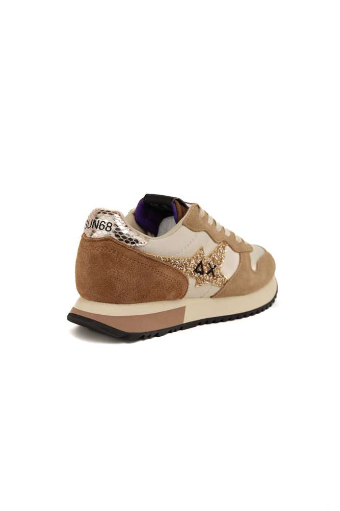 Sneakers donna in pelle e tessuto con glitter beige