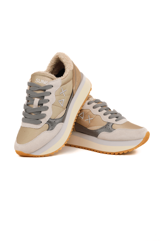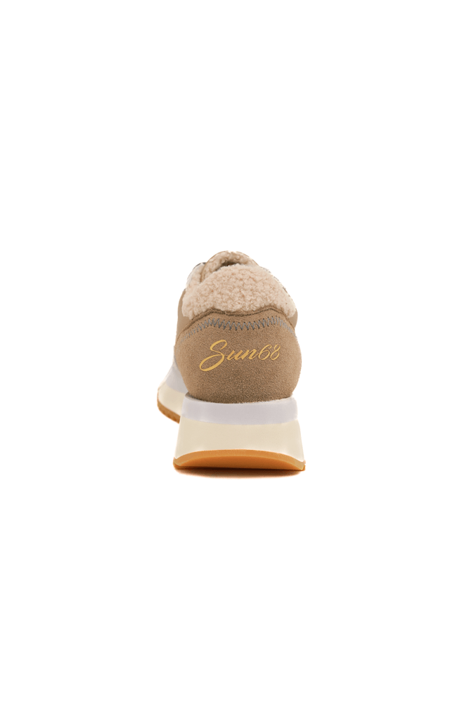 Sneakers donna in pelle e tessuto teddy beige