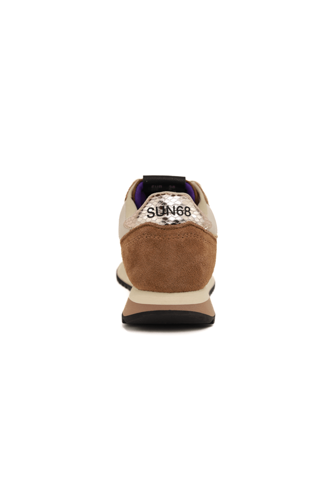 Sneakers donna in pelle e tessuto marrone